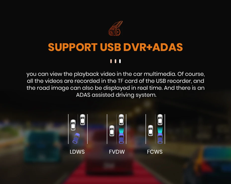 > С столкновения Предупреждение Системы, передняя машина отправления Предупреждение, он обеспечивает вашу безопасность в дороге.> После установки этот видеорегистратор может записывать видео Переднего Вида Автомобиля, включая возможные аварии, обеспечивая безопасность вождения.