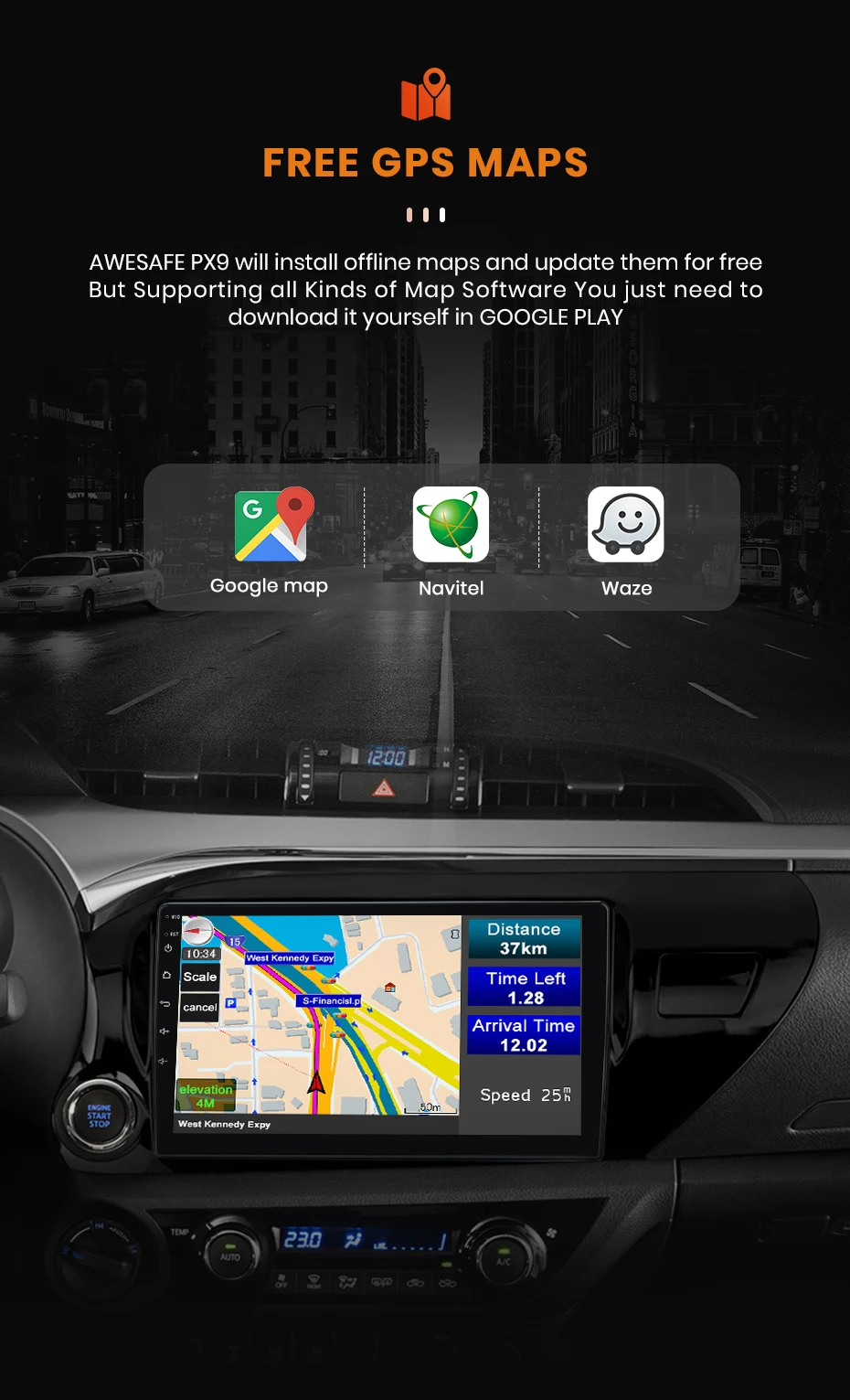 GPS Navigation mapBuilt-in offline map, free update (support Igo/Waze/Google map/Navite)