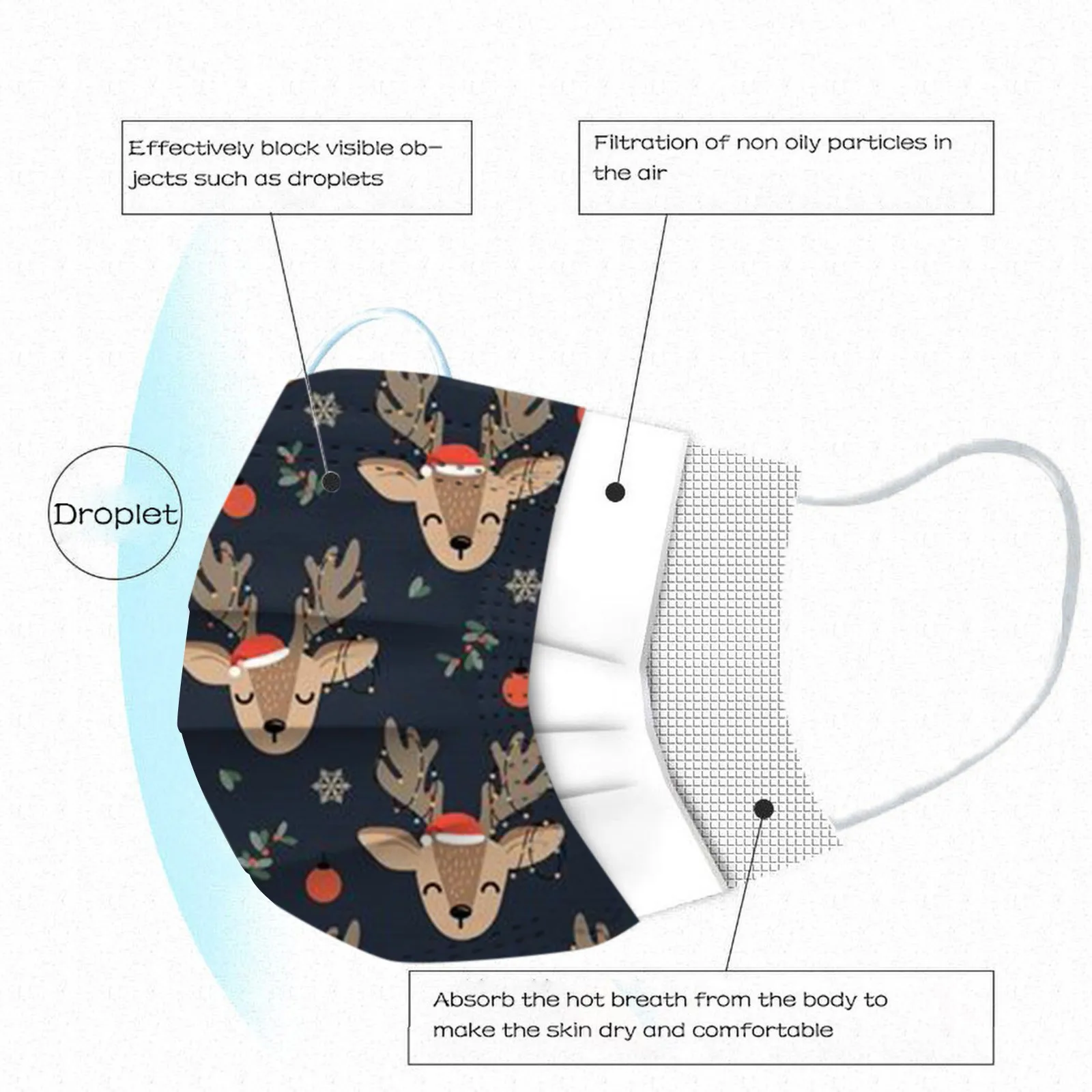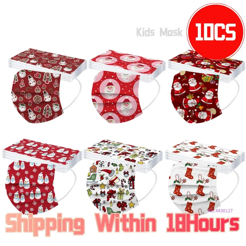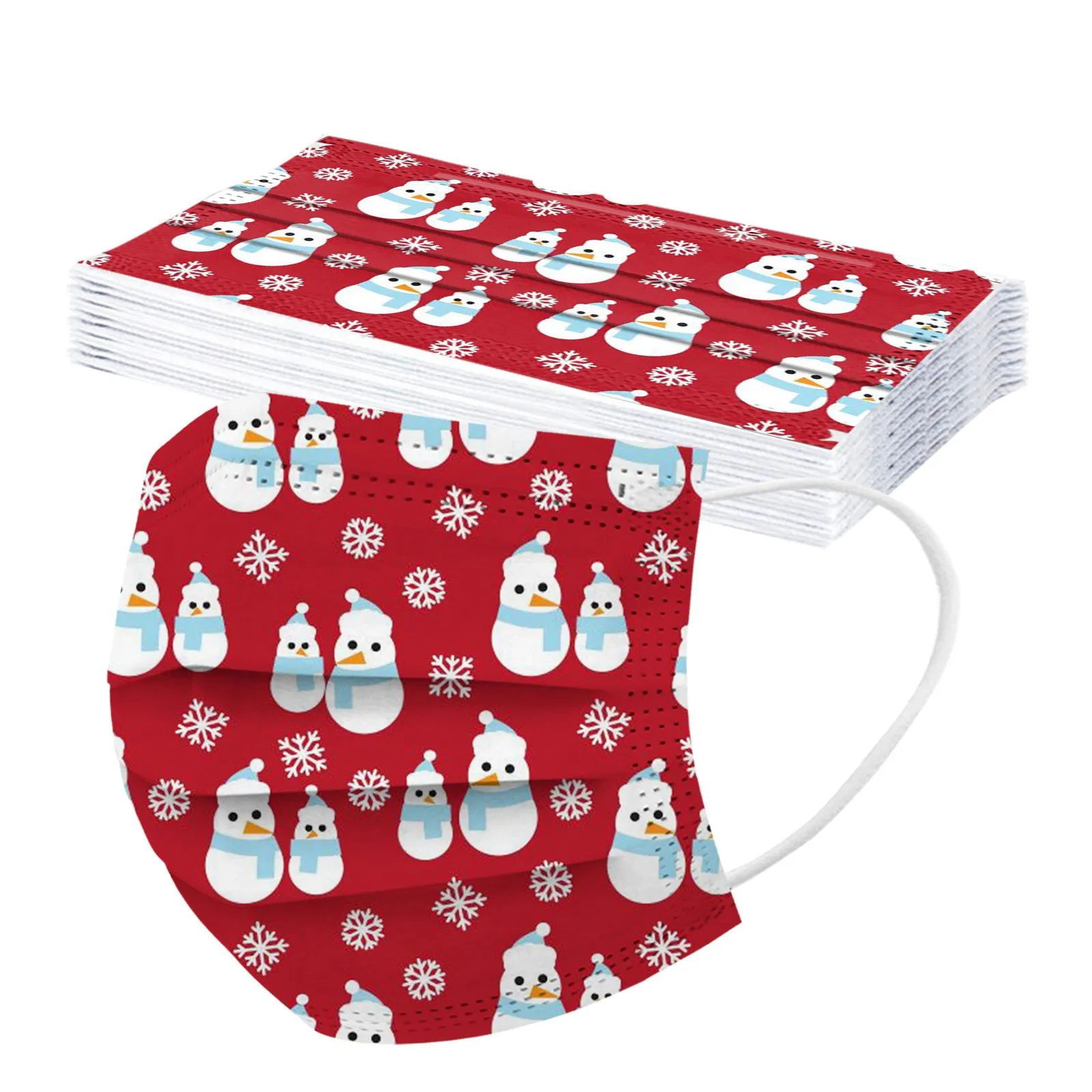 10 шт., одноразовые рождественские маски с 3-слойными фильтрами