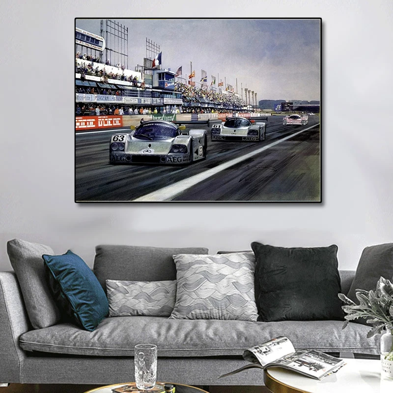 Оригинальный постер Le Mans 24 часа на гоночном автомобиле, печать на холсте, настенная живопись, картина для гостиной, домашнее украшение без рамки