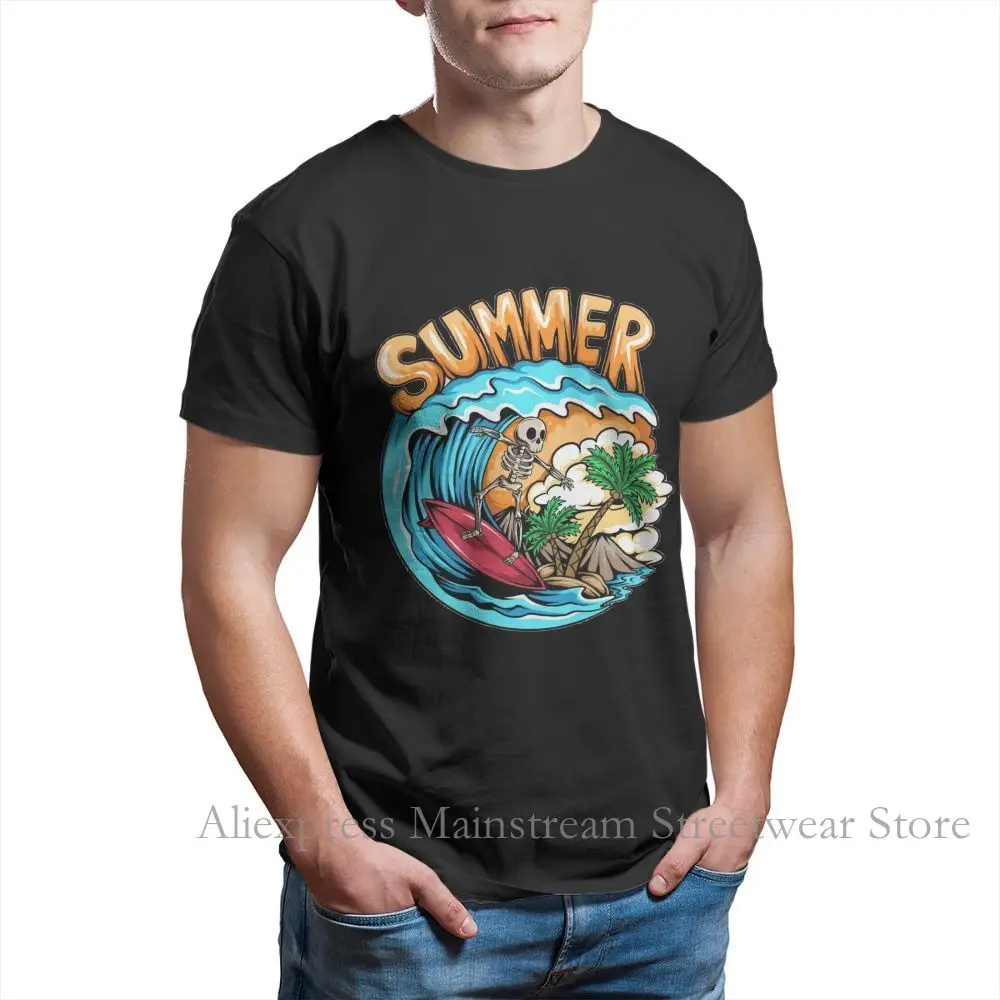 Футболка мужская с принтом черепа серфинга на океане волны, 2021