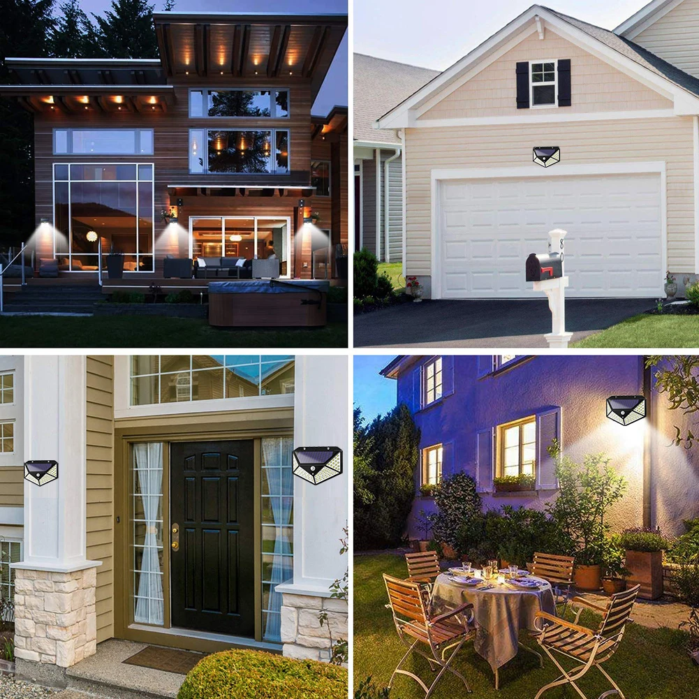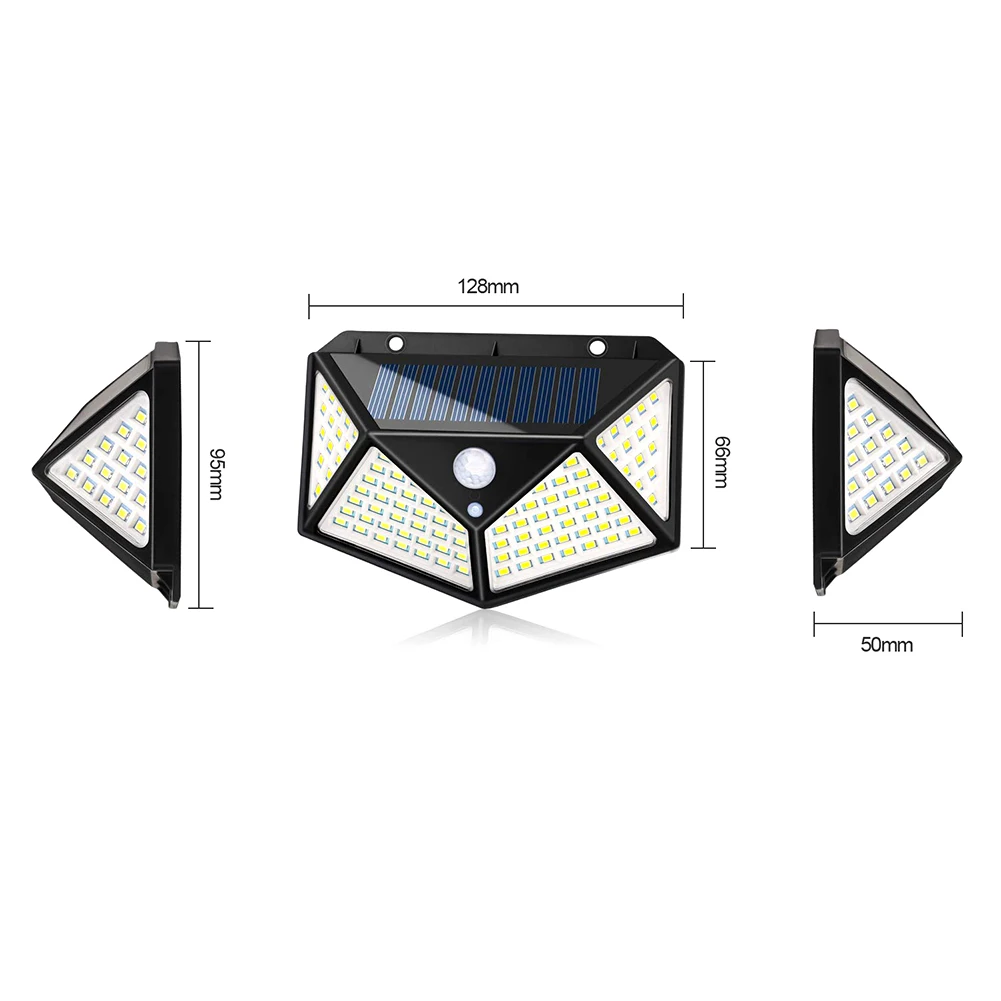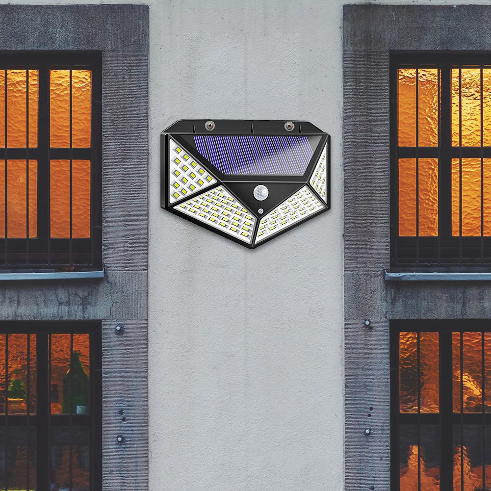 Уличная Водонепроницаемая настенная лампа на солнечной батарее, 100 светодиодов, широкий угол обзора, датчик человеческого тела, уличное садовое освещение на солнечной энергии