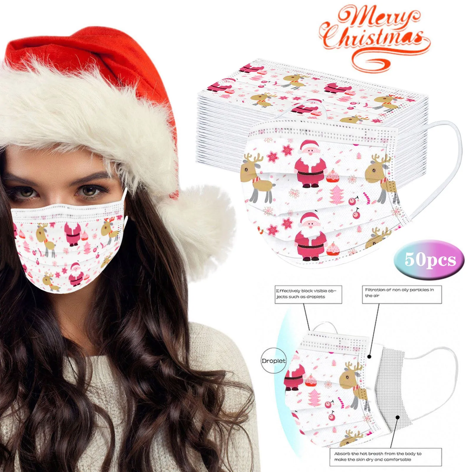 50 шт. универсальная одноразовая Высококачественная Рождественская маска для взрослых с принтом Новая блестящая моющаяся многоразовая маска для маскарада с кристаллами