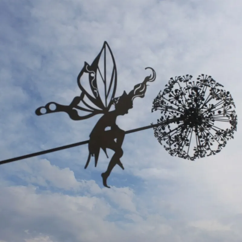 Фея и Одуванчик, танцевальные скульптуры, наружное украшение для сада, 2D металлический двор, художественный декор, лужайка, Ландшафтная статуя