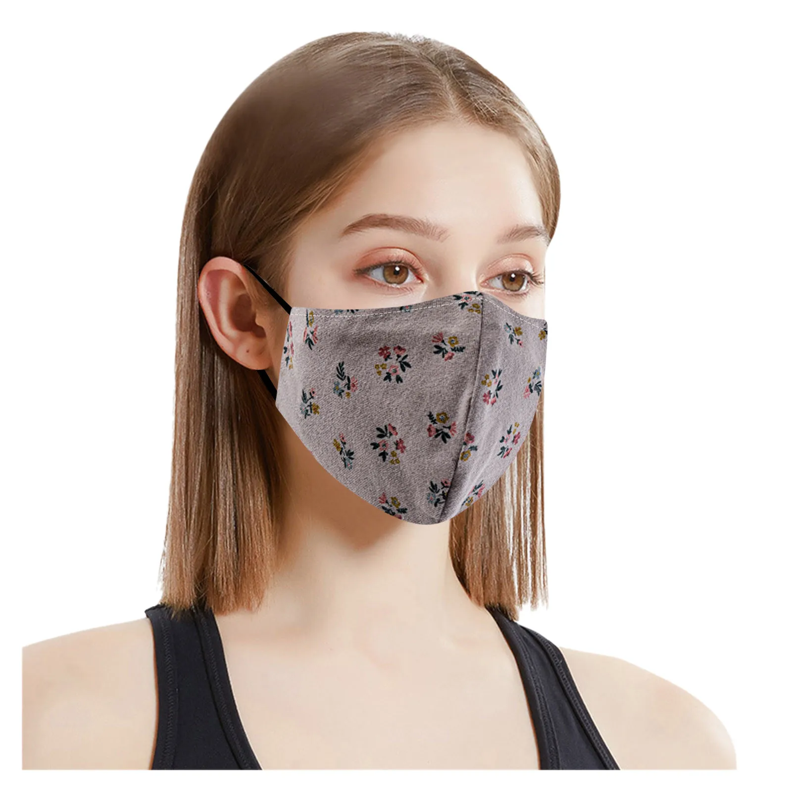 Многоразовая моющаяся маска для лица, с цветочным принтом, для взро...