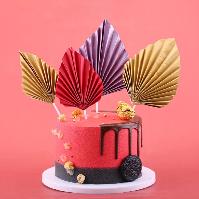 2 шт. бумажный веер, топпер для торта, Золотой лист, украшение для ...