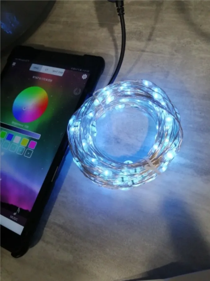 Этот умный Рождественский светильник можно использовать вместе с вашим приложением Bluetooth для работы с вашим устройством. Таким образом, вы можете использовать свой мобильный телефон, чтобы контролировать изменение цвета сказочной лампы, особенно удаленно менять яркость, цвет, режим изменения цвета и режим музыки лампы