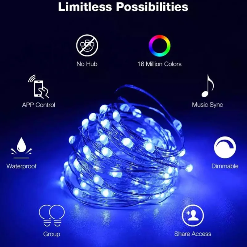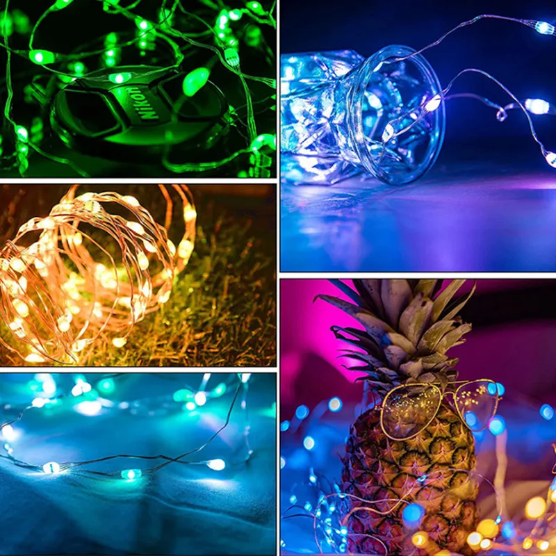 ПараметрыОбщая длина: 2 м/5 м/10 м/20 м/30 мСветильник Кол-во: 20/50/100/200/300/светодиодыСпособ управления: управление через приложение BluetoothМатериал: медный провод, светодиодный шарик лампыВодонепроницаемость: IP65Светодиодный цвет: RGBИсточник питания: USBНапряжение: 5 В