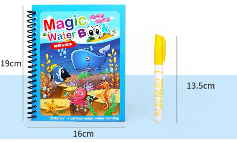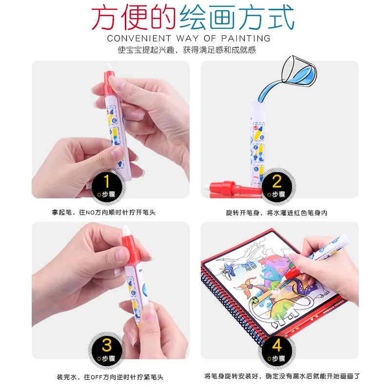 Посылка включает в себя:1 * Волшебная книга для рисования водой (4 страницы)1 * волшебное водяное перо