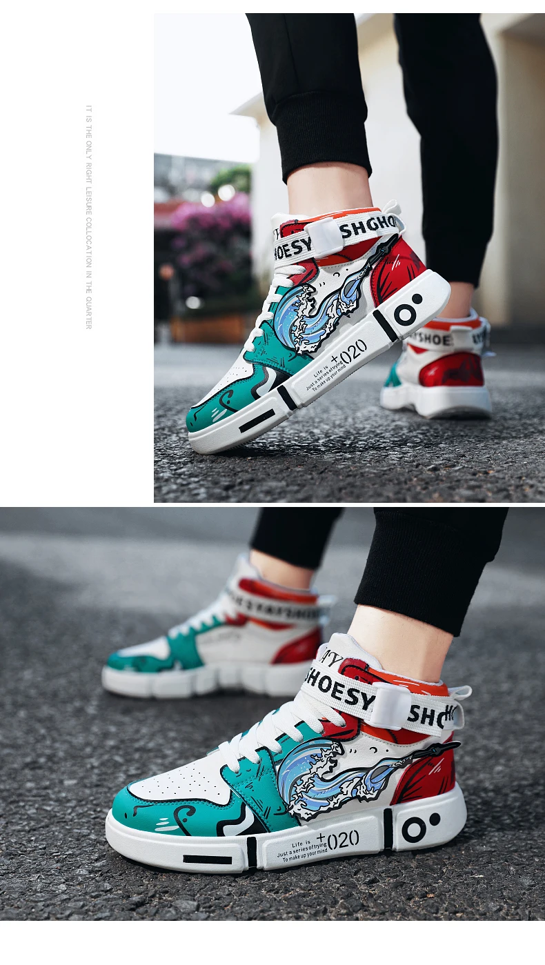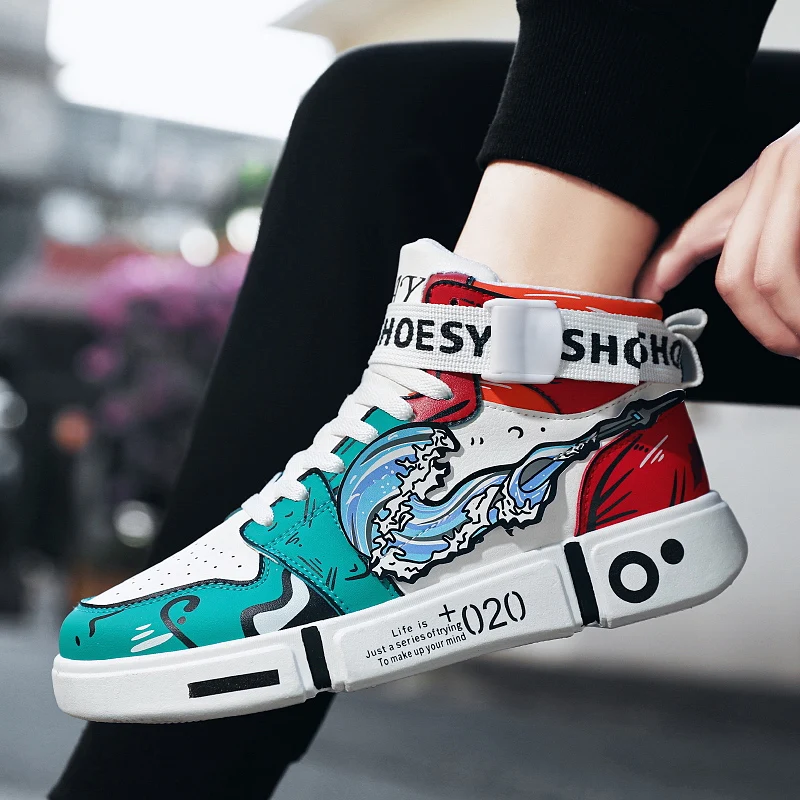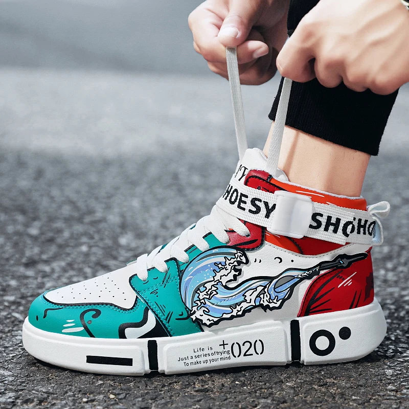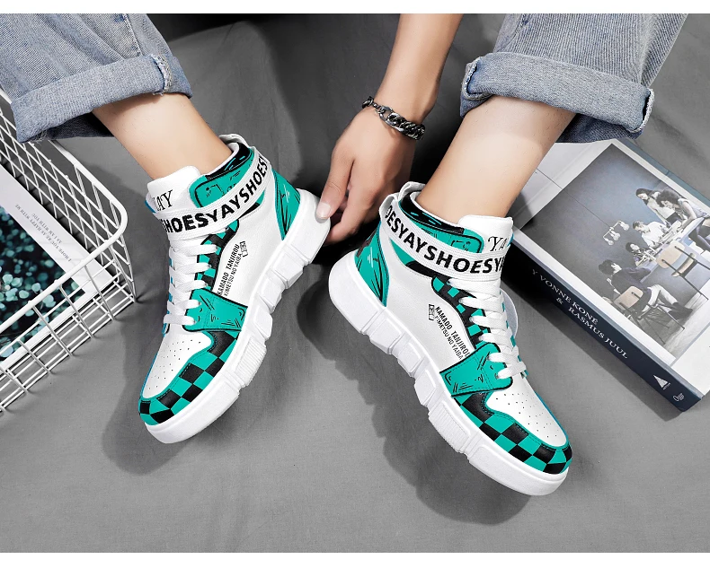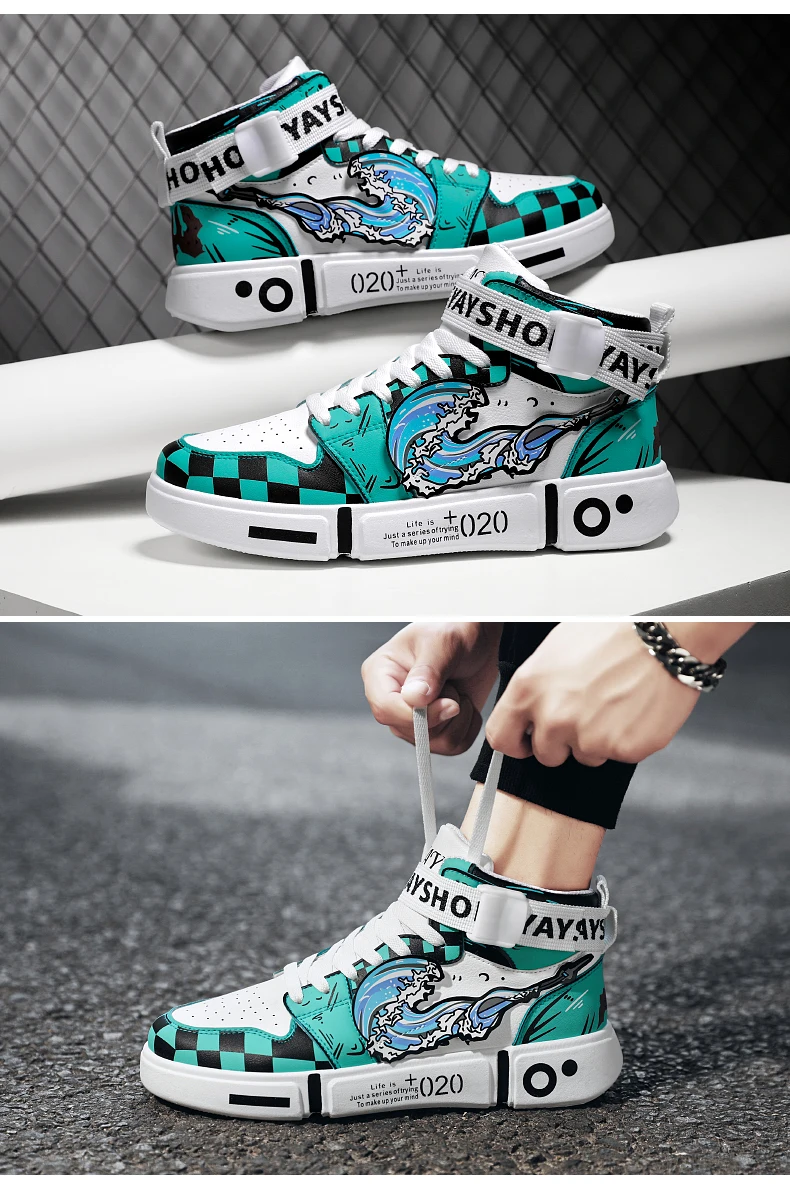 Мужские ботинки в стиле аниме, повседневная обувь для скейтбординга, дышащие Нескользящие мужские вулканизированные ботинки, высокие мужские кроссовки