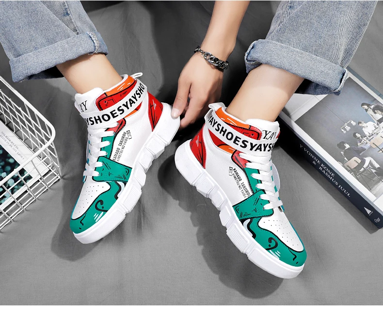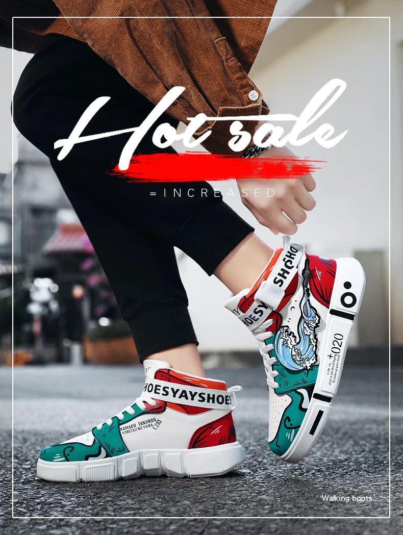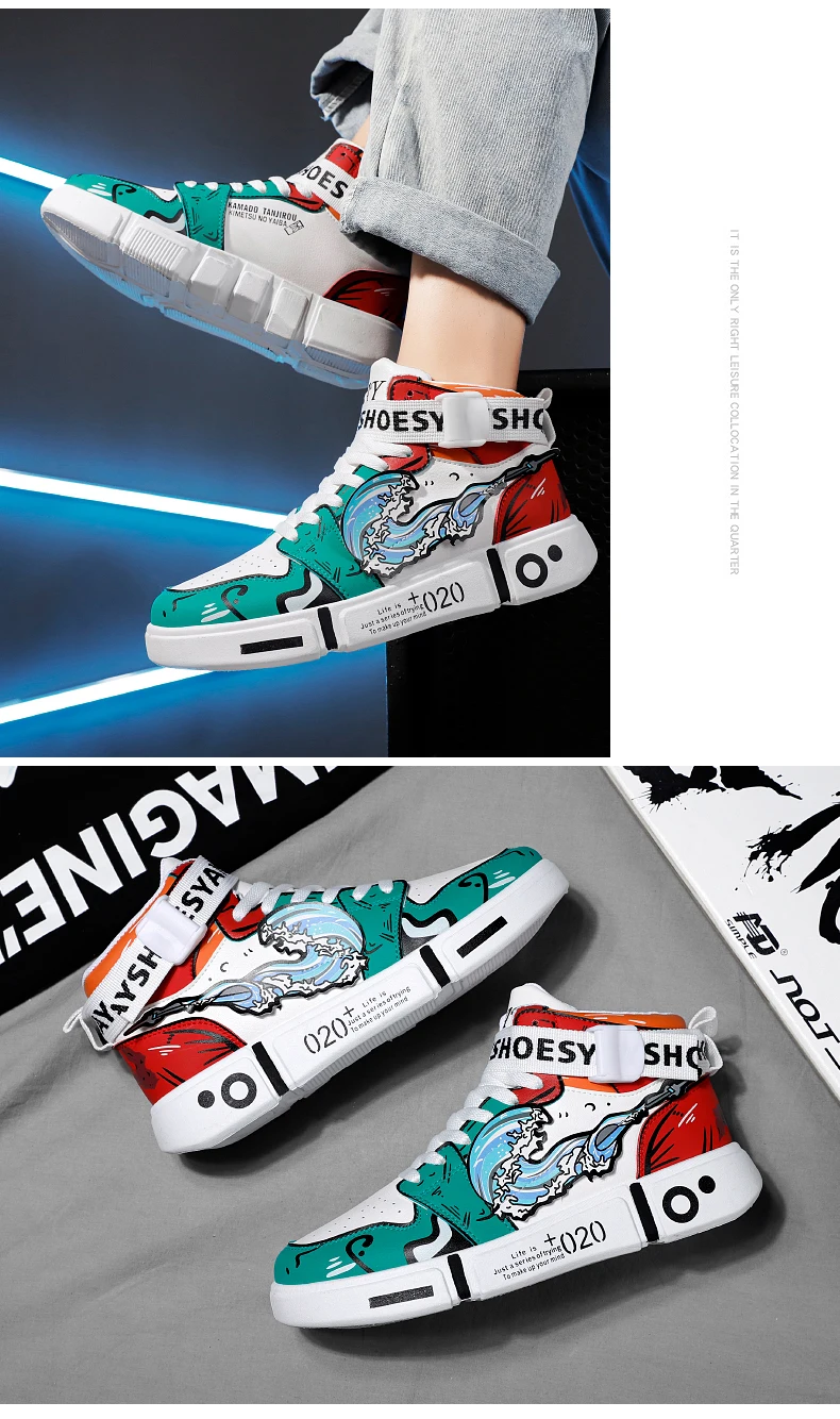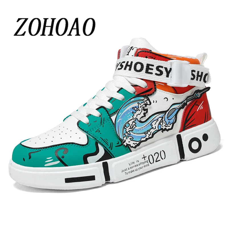 Мужские ботинки в стиле аниме, повседневная обувь для скейтбординга, дышащие Нескользящие мужские вулканизированные ботинки, высокие мужские кроссовки