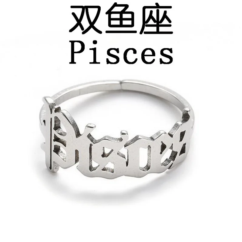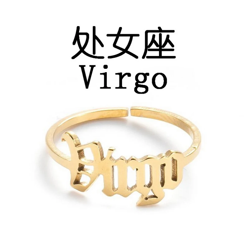 Регулируемое Открытое кольцо с 12 созвездиями для женщин, украшения для вечерние Ринок со знаками Зодиака, кольца из нержавеющей стали золотого и серебряного цвета с Овен, Лео