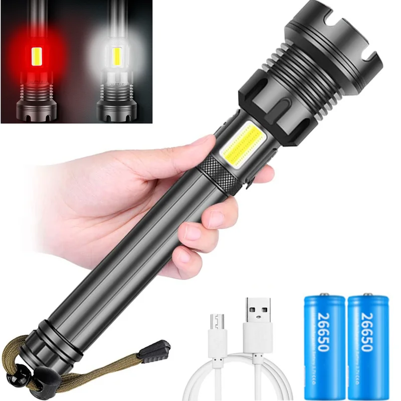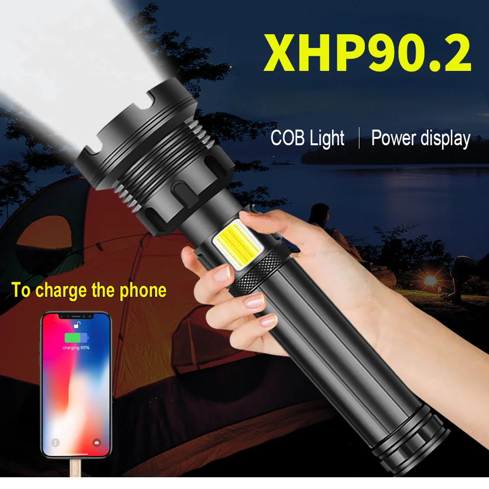 Супер мощный XHP90.2 COB светодиодный фонарик, светильник светодиодный фонарик, перезаряжаемый Тактический масштабируемый фонасветильник с батареей 26650