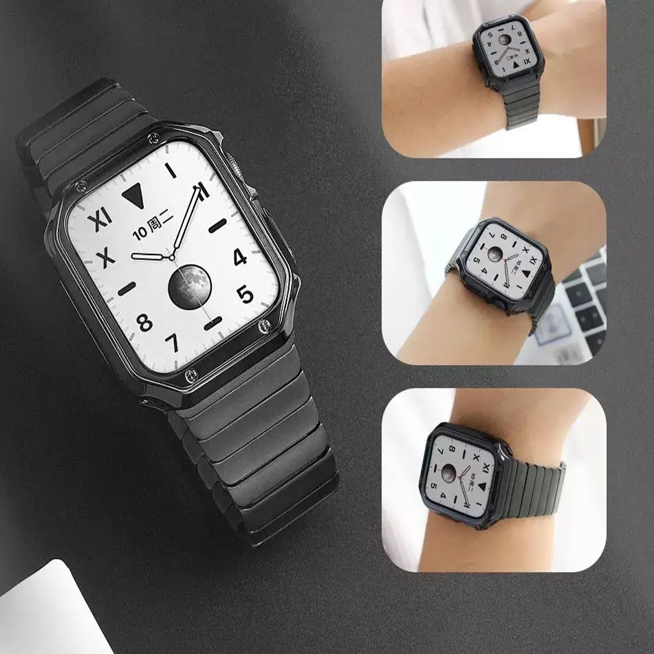 Ремешок из нержавеющей стали и силиконовый чехол для Apple Watch Ba...