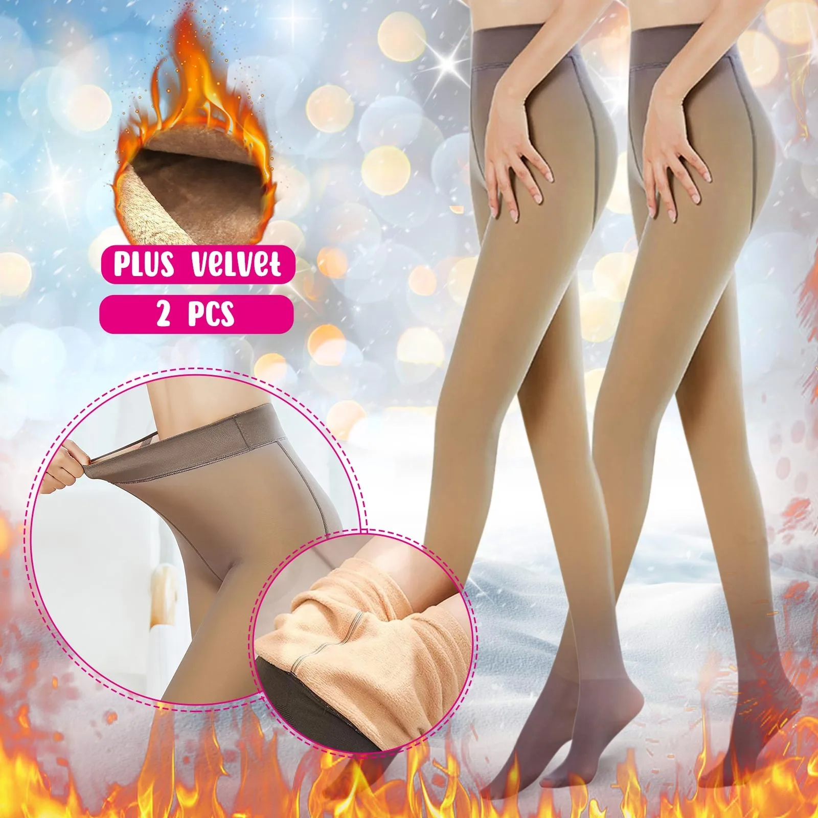 2 шт., женские колготки, зимние ноги, поддельные, полупрозрачные, теплые, флисовые Колготки, плюс бархат, поддельные, полупрозрачные чулки, леггинсы, 90220320 г