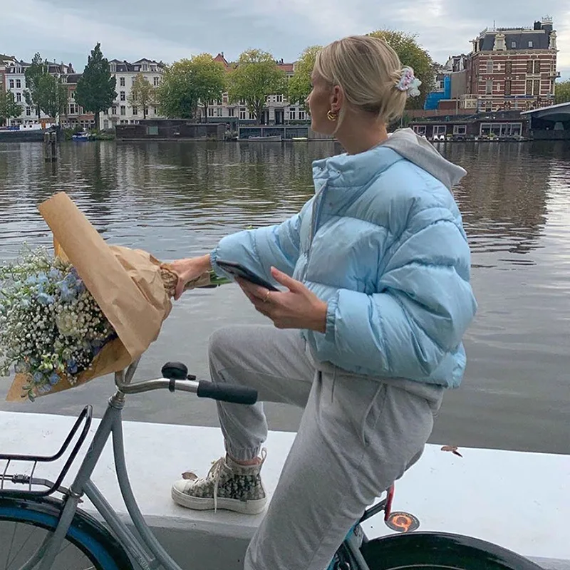 Светло-голубая зимняя короткая куртка ecoine, теплые Пузырьковые па...