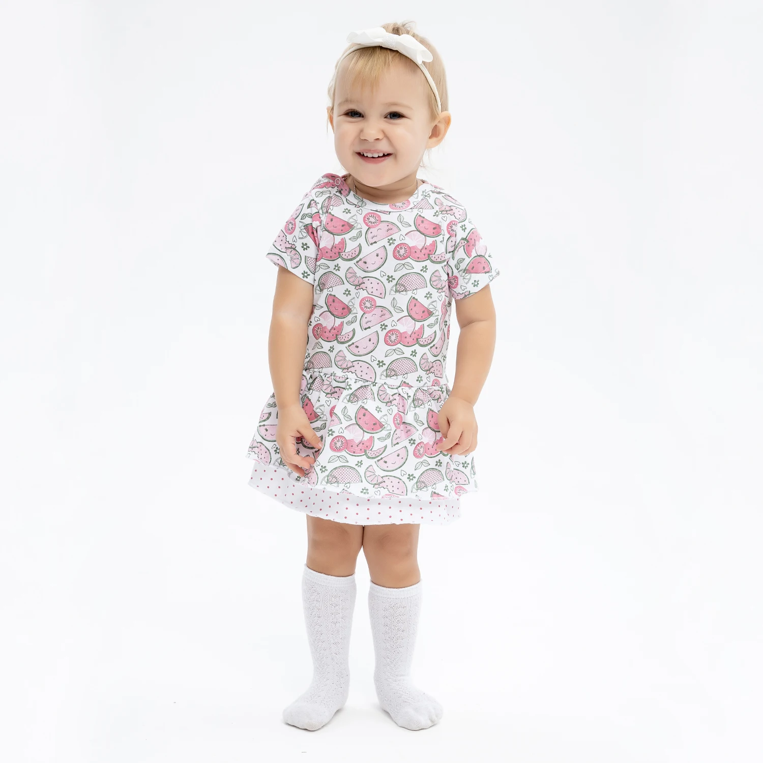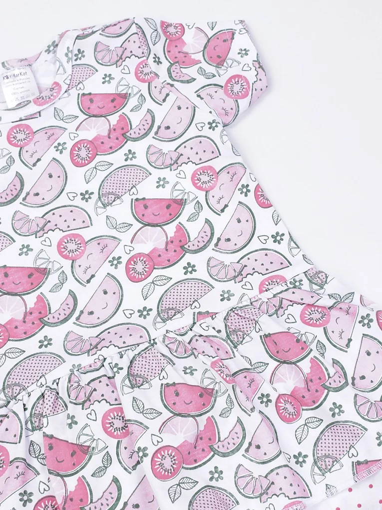 Самым любимым и самым дорогим – лучшие вещи. Легкий боди для новорожденной девочки из коллекции «Арбузики». Сшит из мягкого натурального 100% хлопка высочайшего качества (Кулирка), в котором принцесса будет чувствовать себя уютно и комфортно. Забавный бодик для малыша надежно закрывает паховую зону и защитит от переохлаждения. Главная фишка этого бодика – яркий набивной принт с арбузиками. Продуманный крой, мягкие швы, круглый вырез горловины, плоские кнопки-застежки, приятная ткань - в детском боди с коротким рукавом от КотМарКот предусмотрено всё! Прекрасная модель для новых образов на каждый день, которая будет идеально сочетаться в комплекте с другими вещами из одноимённой коллекции. Подарите малышу заботу и самые любимые вещи вместе с КотМарКот.