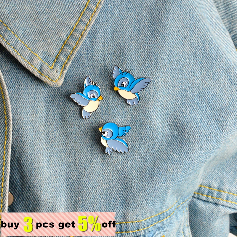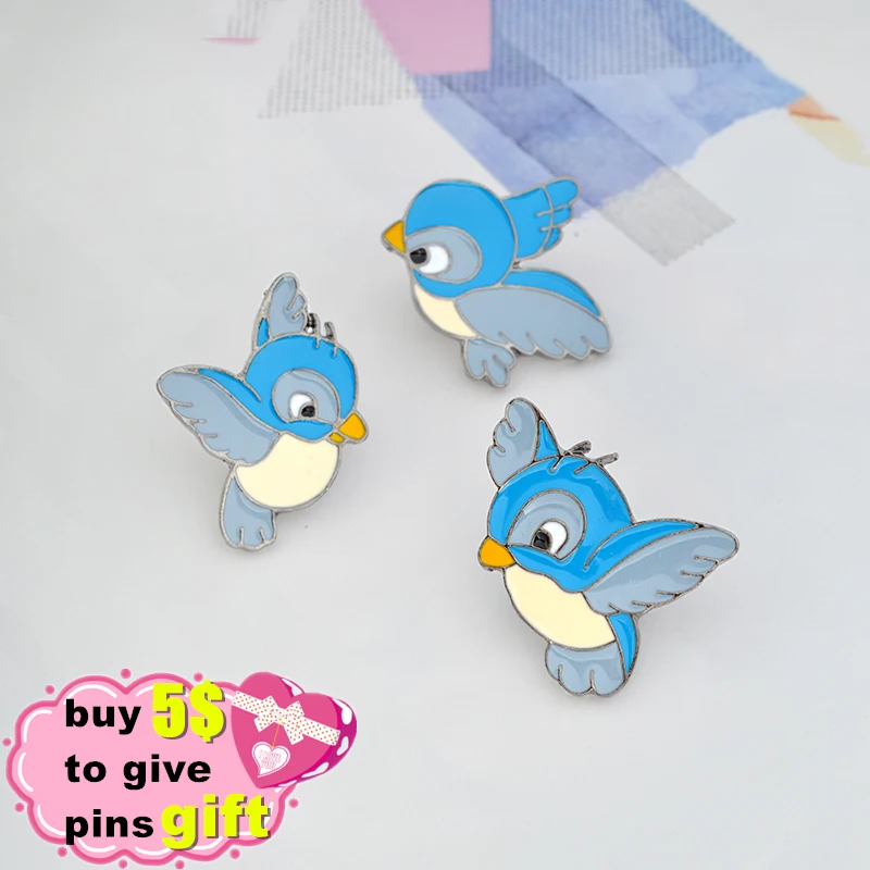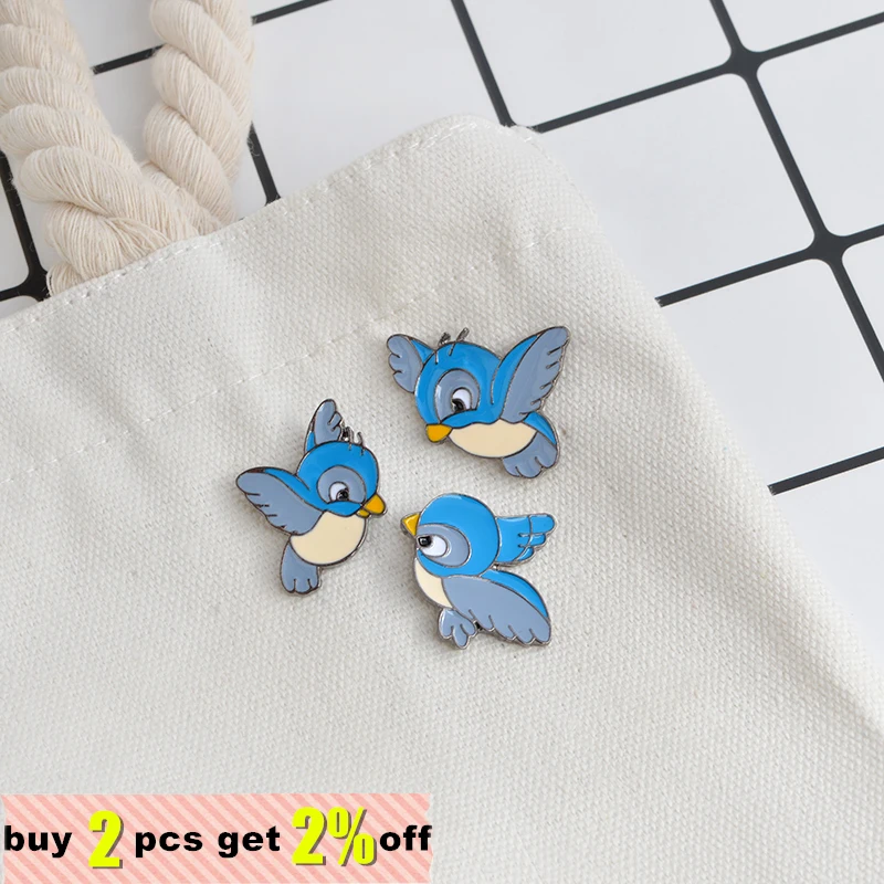 Синяя птица брошь милый эмаль в форме трех птиц брошь с животными К...
