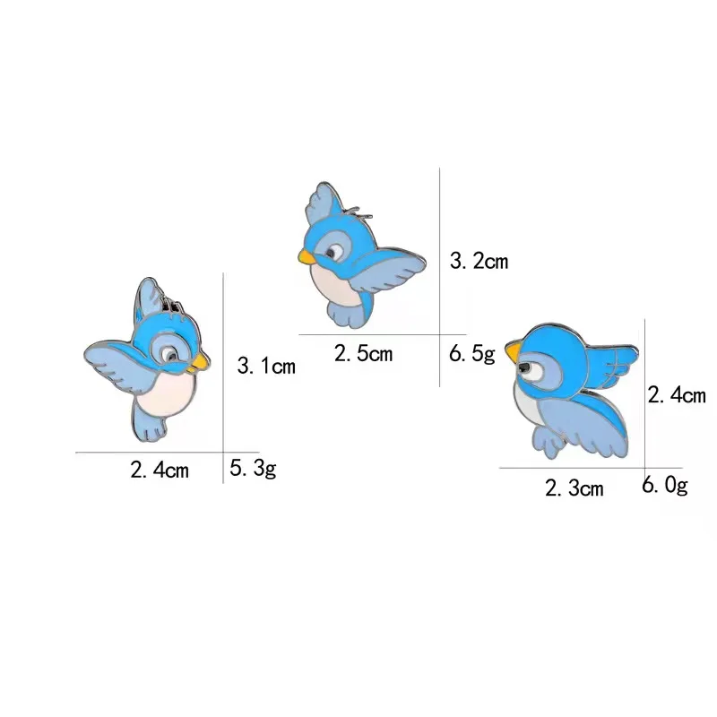 Брошка на лацканы, эмалированная брошь с синими птицами, 3 шт.набор