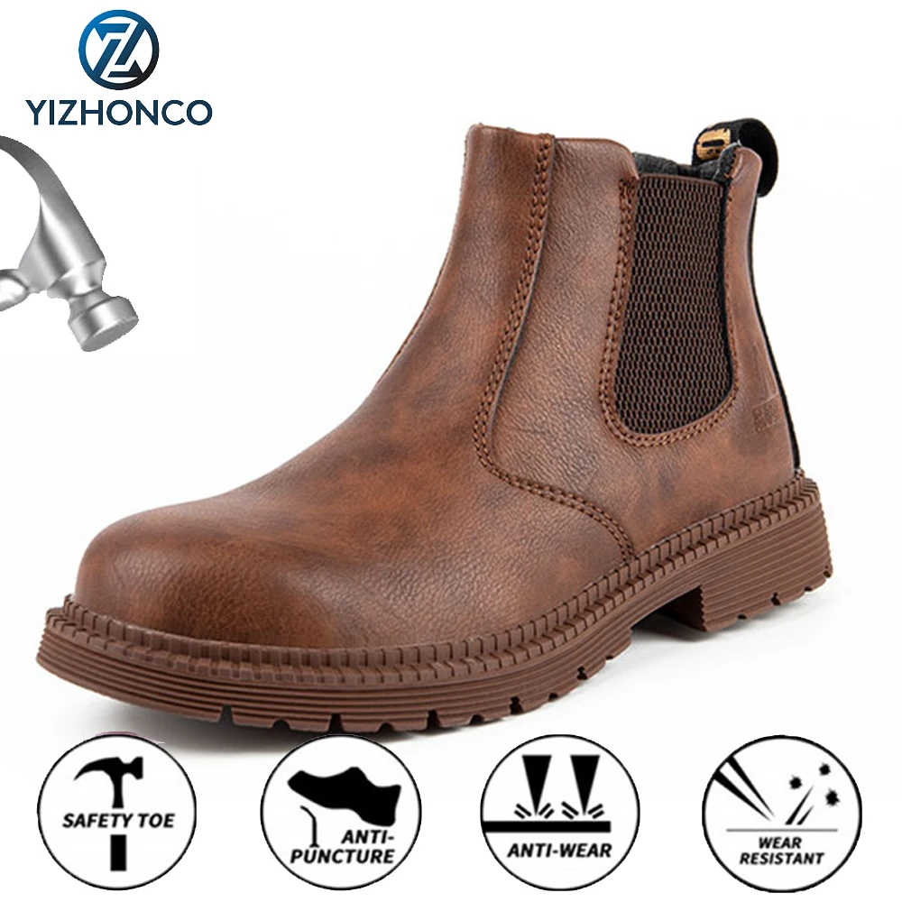 Рабочие защитные ботинки, мужские ботинки челси, сапоги со стальным...