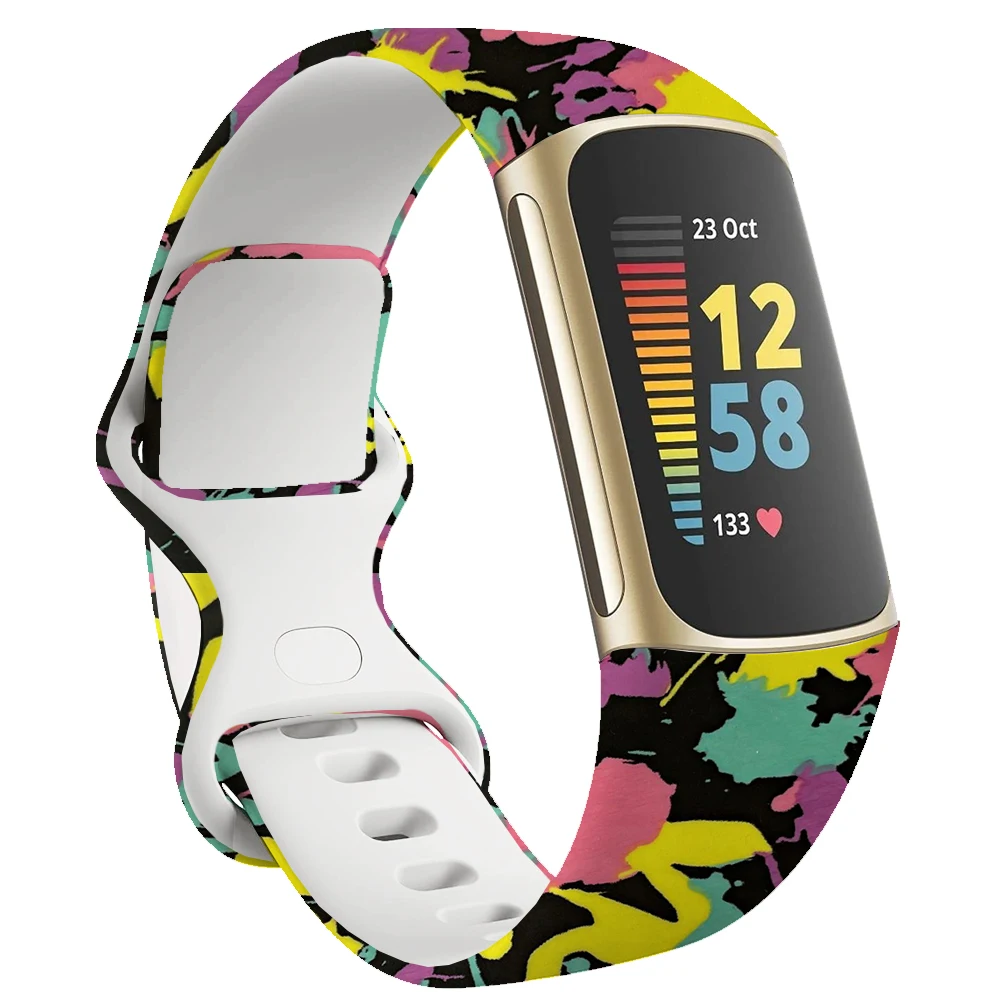 Ремешок для часов Fitbit Charge 5, спортивный силиконовый сменный Браслет с принтом для Fitbit Charge 5, Аксессуары для браслета S L