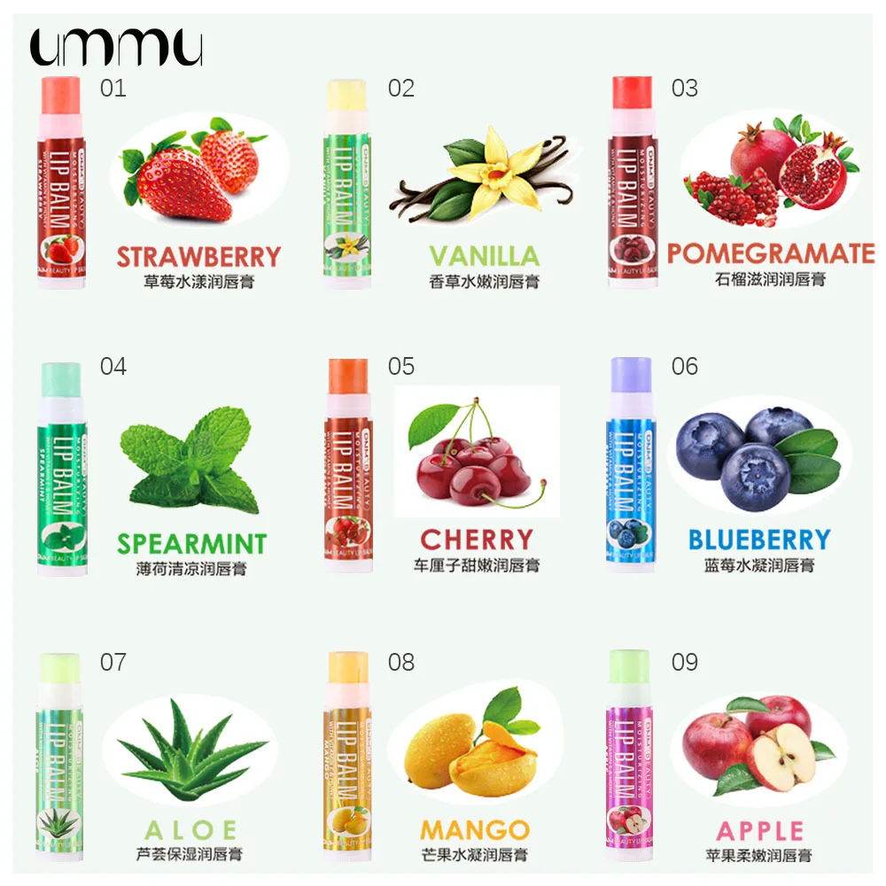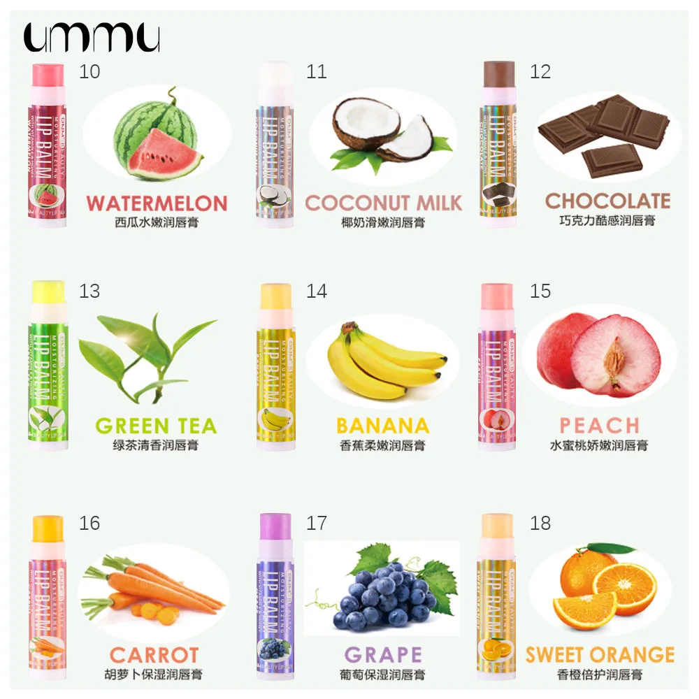 Увлажняющий бальзам для губ UMMU, 18 цветов, с витаминами, многофруктовый вкус, увлажняющий бальзам для губ, многоцветный