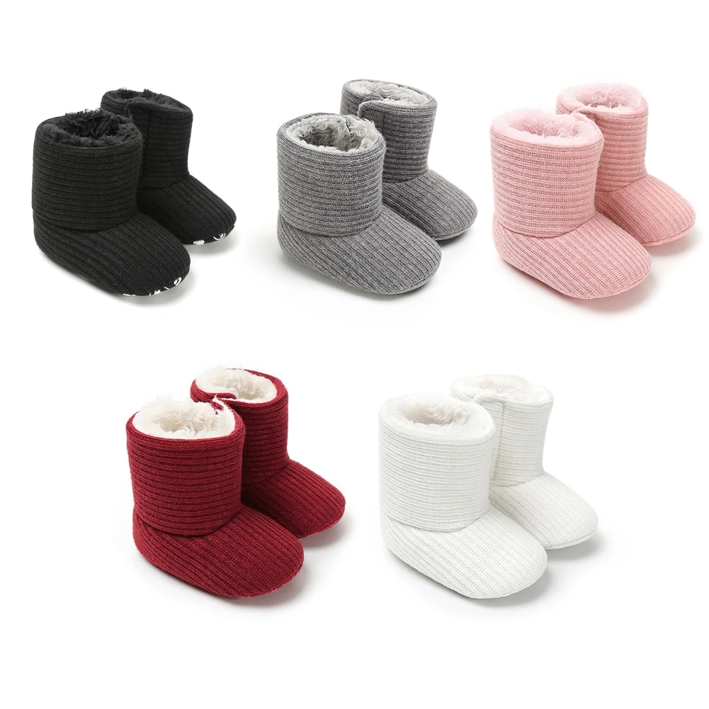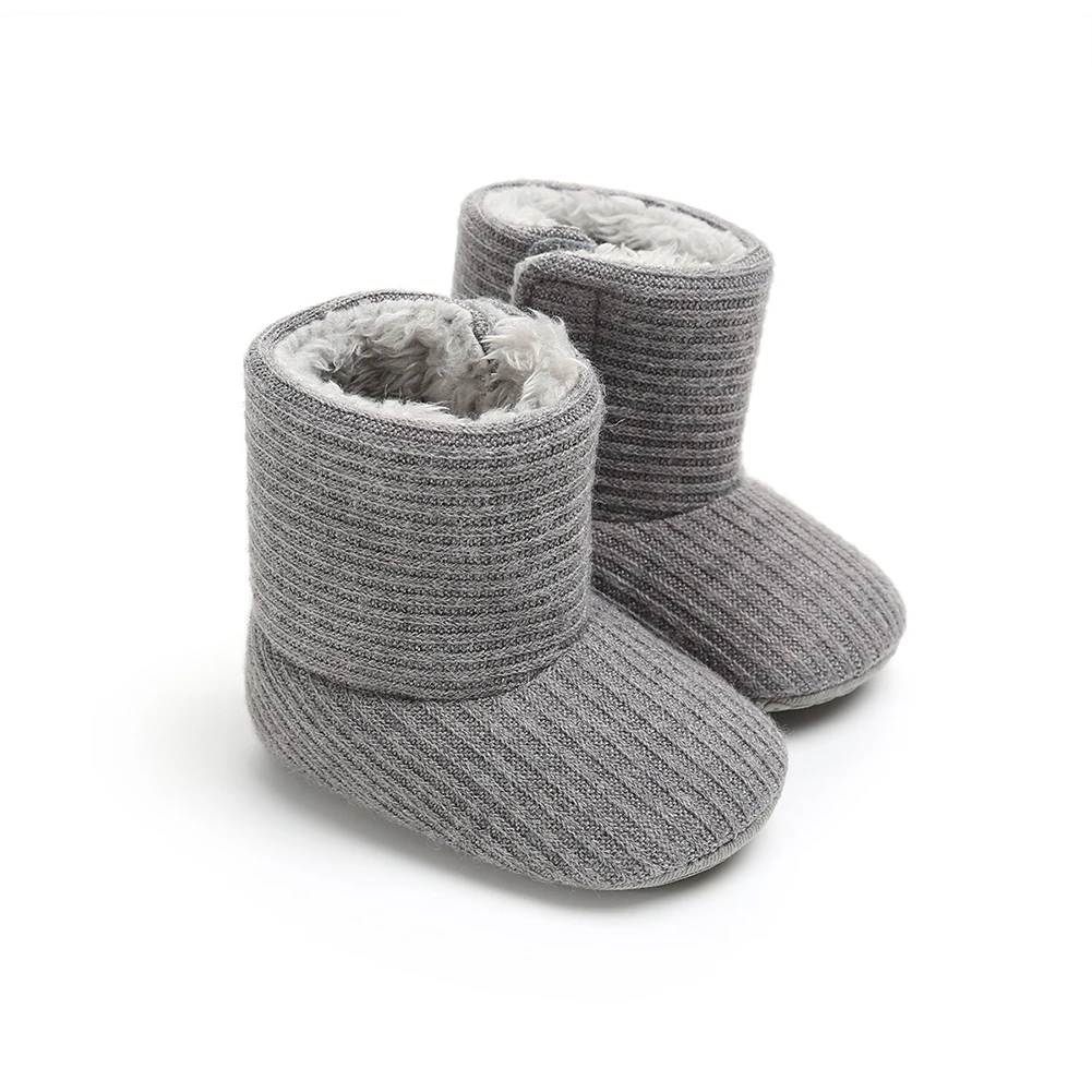 Baywellзимние вязаные зимние ботинки; Обувь для маленьких мальчиков и девочек; Однотонные флисовые ботинки с мягкой подошвой и плюшевой подкладкой для первых шагов; 0-18 месяцев