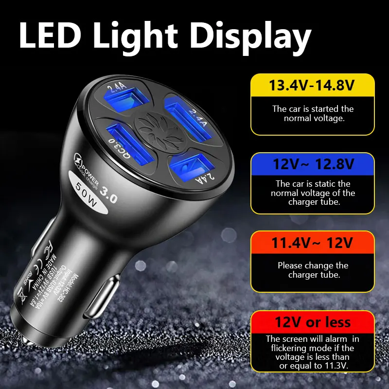 Быстрое зарядное устройство для автомобиля, 50 Вт, QC3.0, 4 USB, бы...