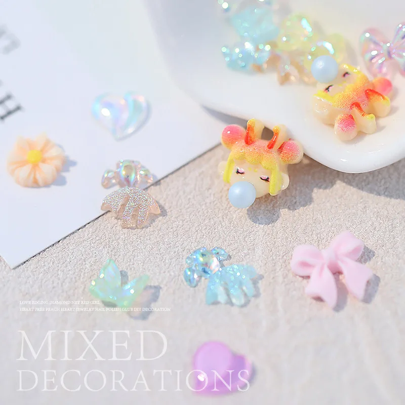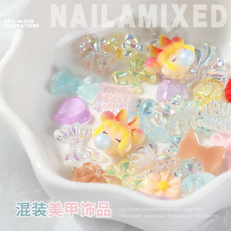 Мультяшные милые золотые рыбки бант орнамент Бант дизайн ногтей Стразы дизайн ногтей смешанные ювелирные изделия DIY Искусственные аксессуары