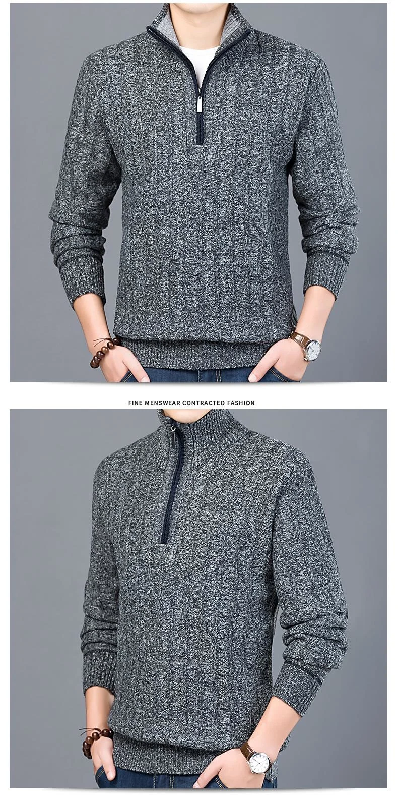 Мужской свитер, Повседневный пуловер на молнии, теплый облегающий в...