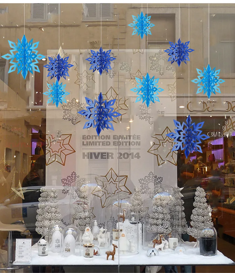 Рождественские украшения, белыеЗолотыесеребряныесиние снежинки, 3D ...