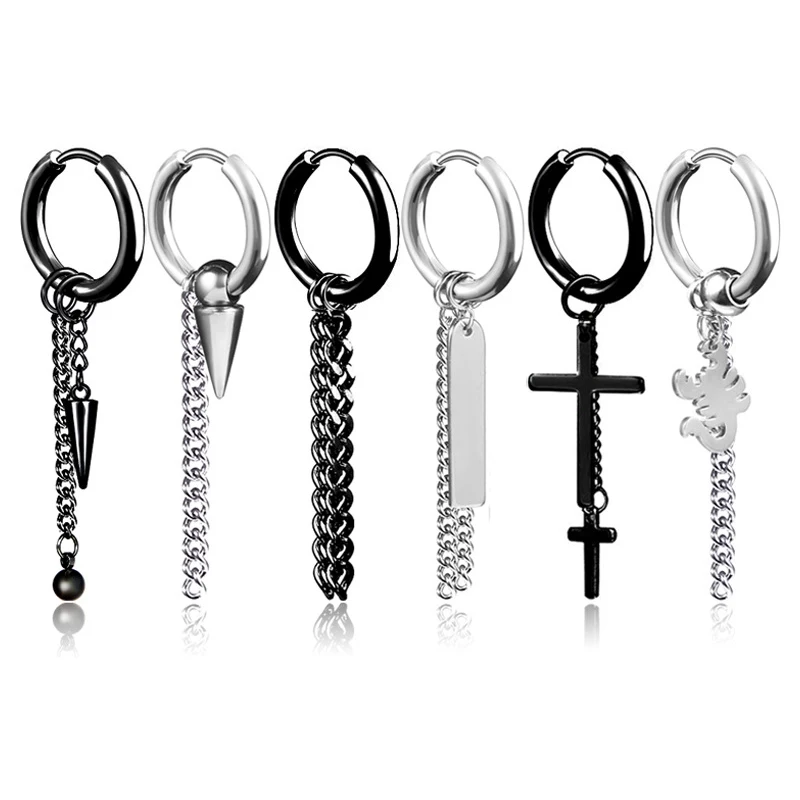 Оригинальные уникальные мужские серьги с одним шипами из нержавеющей стали, мужские серьги с крестом в стиле панк со звездами, подарки, новинка, 1 шт.