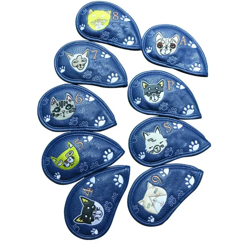 9 шт. портативные головные уборы для гольф-клуба, милый мультяшный рисунок кота, полиуретановый водонепроницаемый фарватер, гибридный Паттер, чехол, набор, винтажныйОписание:100% новый и высокое качество