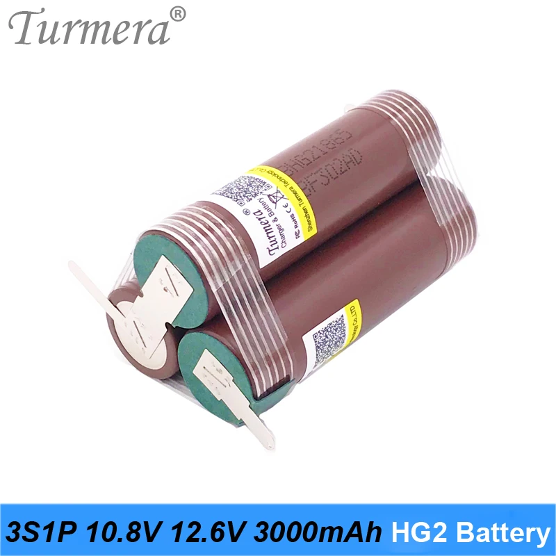 Turmera 3S 10,8 V 4S 14,4 V 5S 18V 6S 25V 18650 HG2 3000mAh батарея 30A для пайки 12V 21V 20V дрель шуруповерт