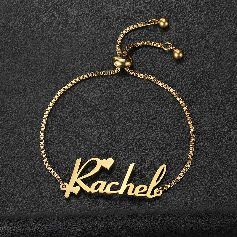 Браслет Kcaco с именем для женщин и детей, регулируемый растягивающийся Арабский Браслет из нержавеющей стали с коробкой, подарки-цепочки