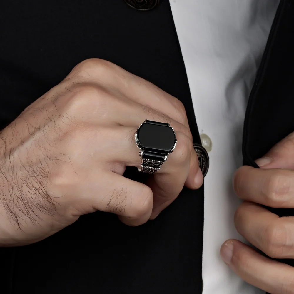 Мужское кольцо из серебра 925 пробы с черным ониксом