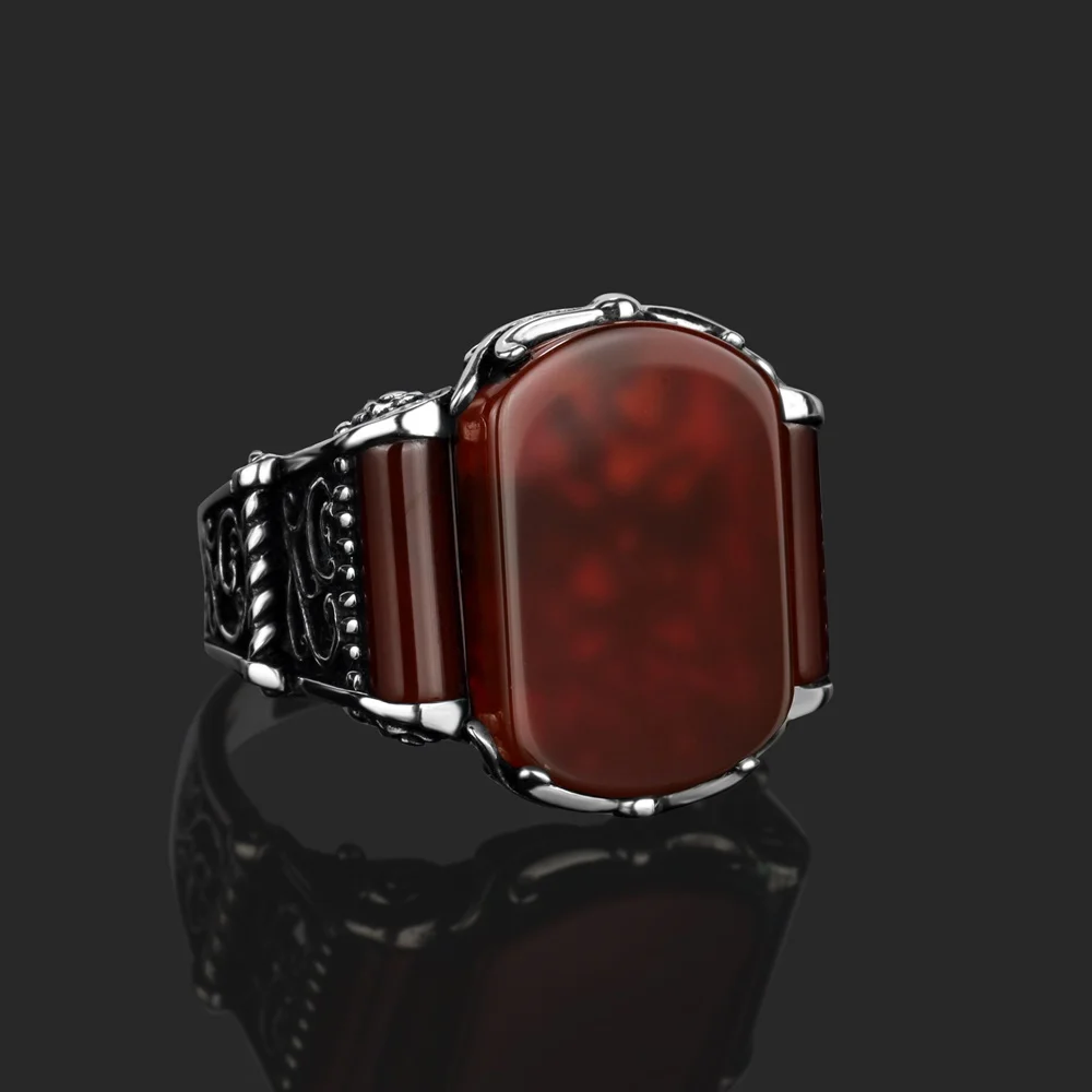 Серебряное мужское кольцо ручной работы в турецком стиле с рубином,...