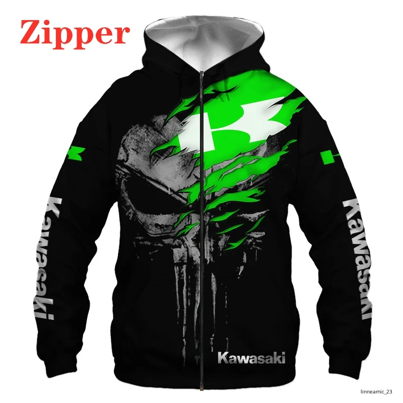 Новинка 2021, толстовка Kawasaki с логотипом мотоцикла, пуловер с 3D принтом, толстовка в стиле Харадзюку, модная куртка для гонок, Мужская толстовка на молнии