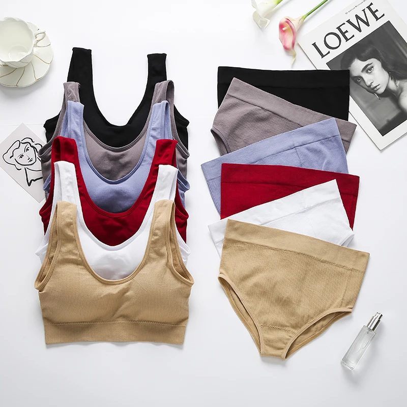 Бесшовный беспроводной Женский комплект с бюстгальтером, трусики, комплект нижнего белья, бюстгальтер пуш-ап, укороченный топ, Трусики с высокой талией, сексуальное нижнее белье, трусики, интимное Новое