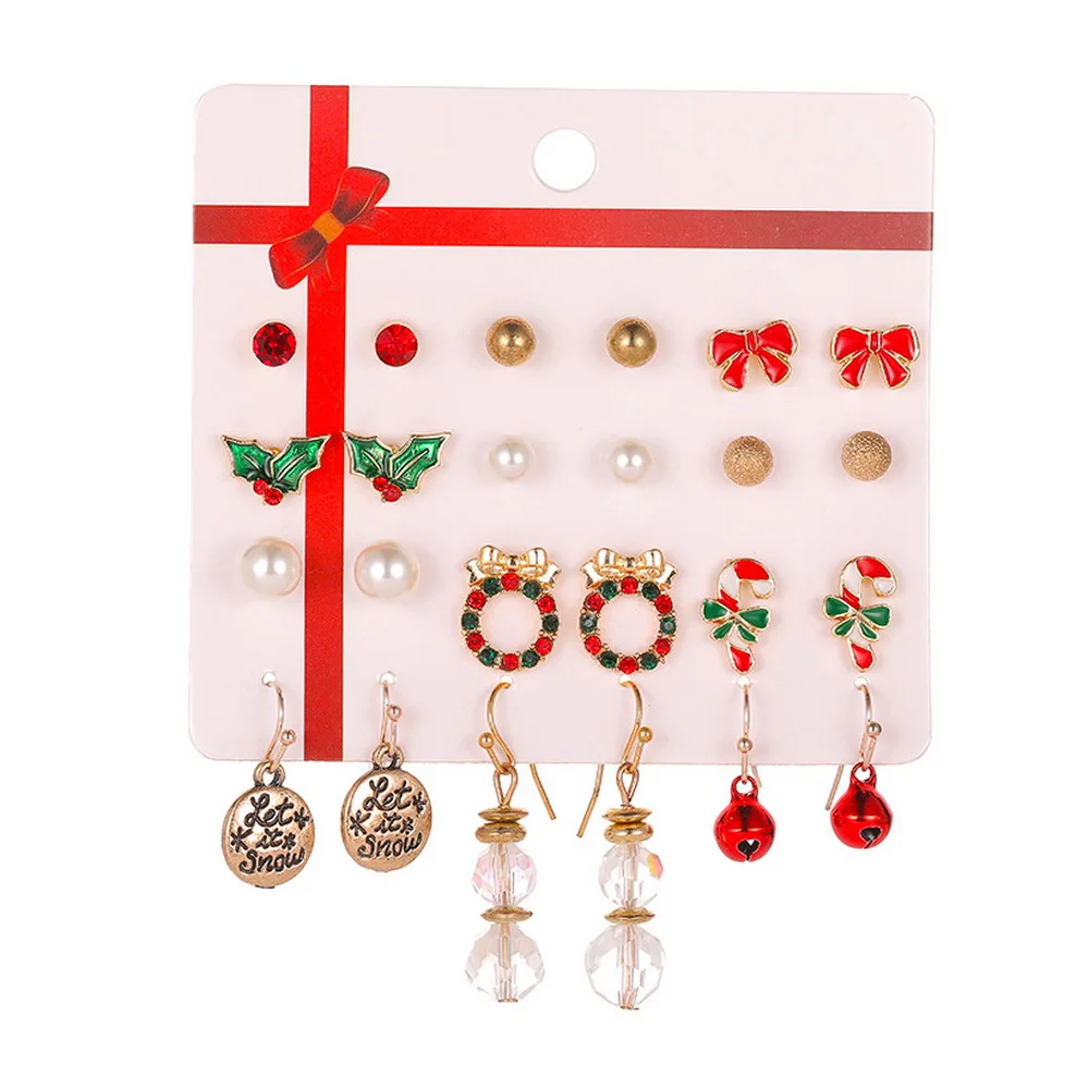 Набор женских сережек, 12 пар, в рождественском стиле, с Санта-Клау...