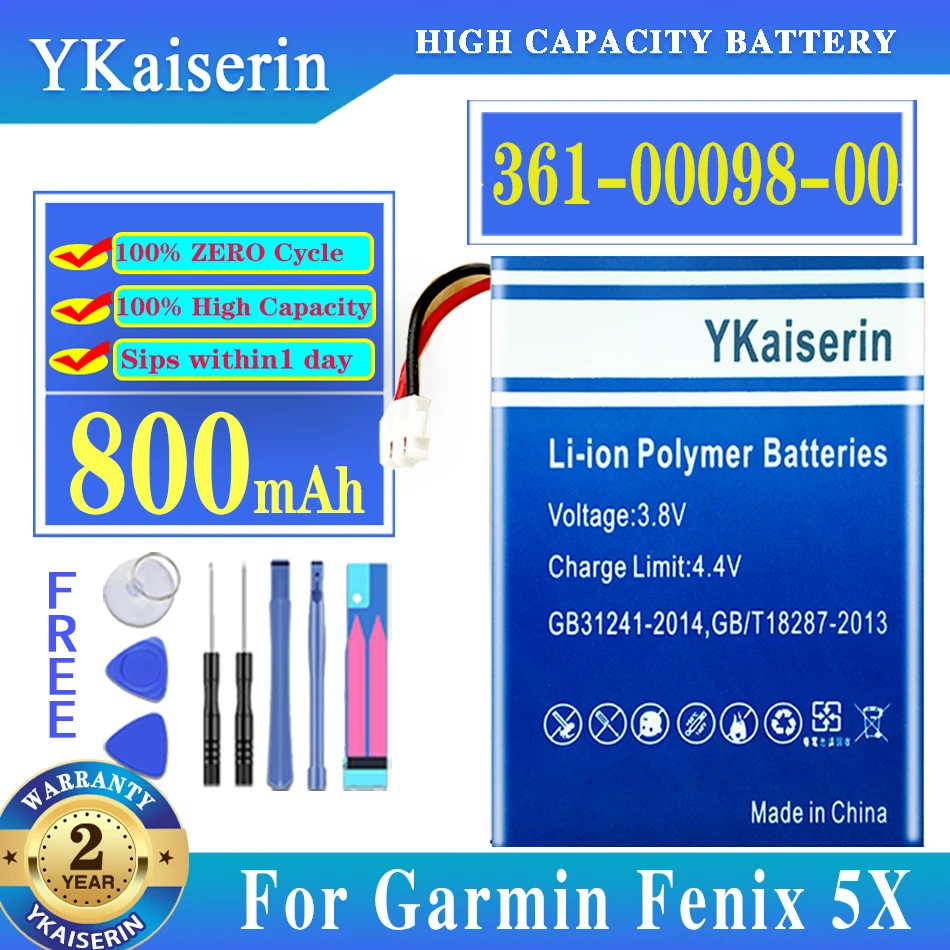 Аккумулятор ykaisсеребрин на 800 мА ч для спортивных часов GARMIN Fenix 5X Fenix5x GPS + трек-код