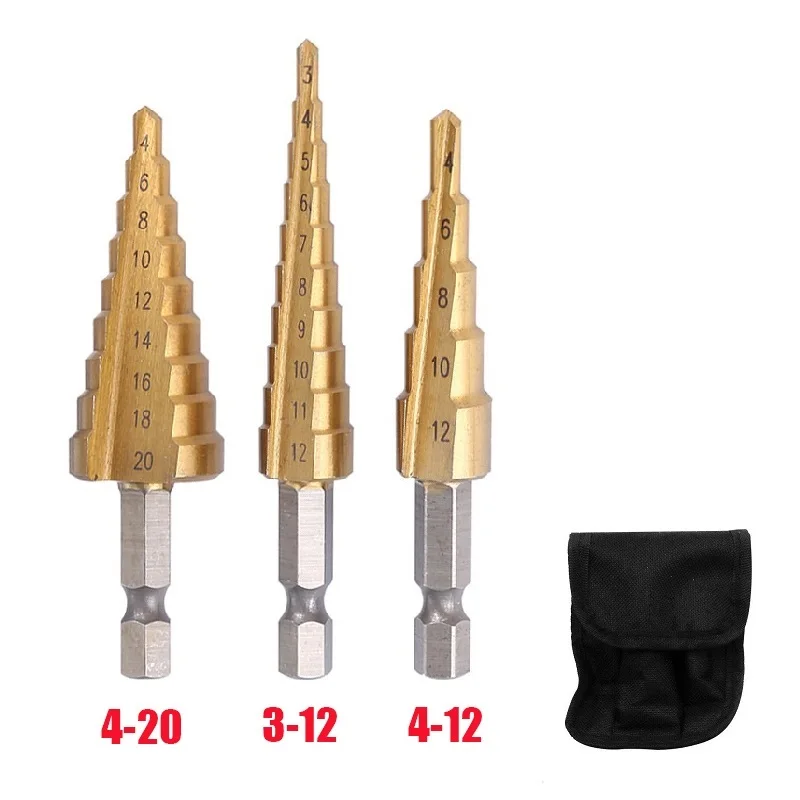 3 шт. 3-12 4-12 4-20 мм HSS прямая канавка ступенчатое сверло с титановым покрытием из дерева и металла резак для отверстий Core конусный сверлильный инструмент