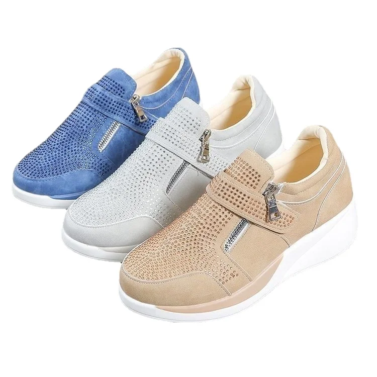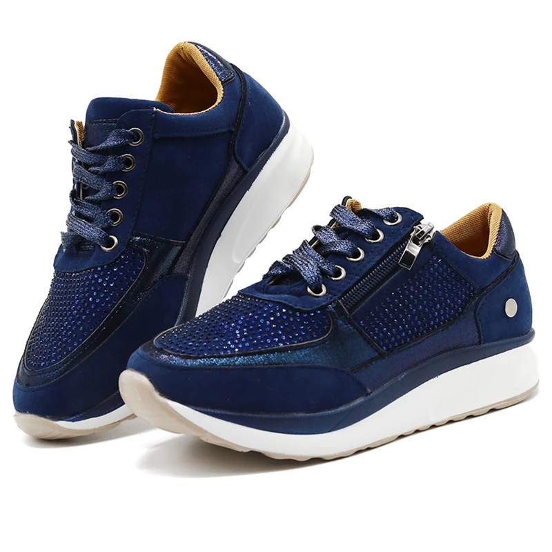 Женские кроссовки на танкетке размера плюс 43, Вулканизированная обувь с блестками, модная спортивная обувь на молнии со шнуровкой, женская повседневная обувь