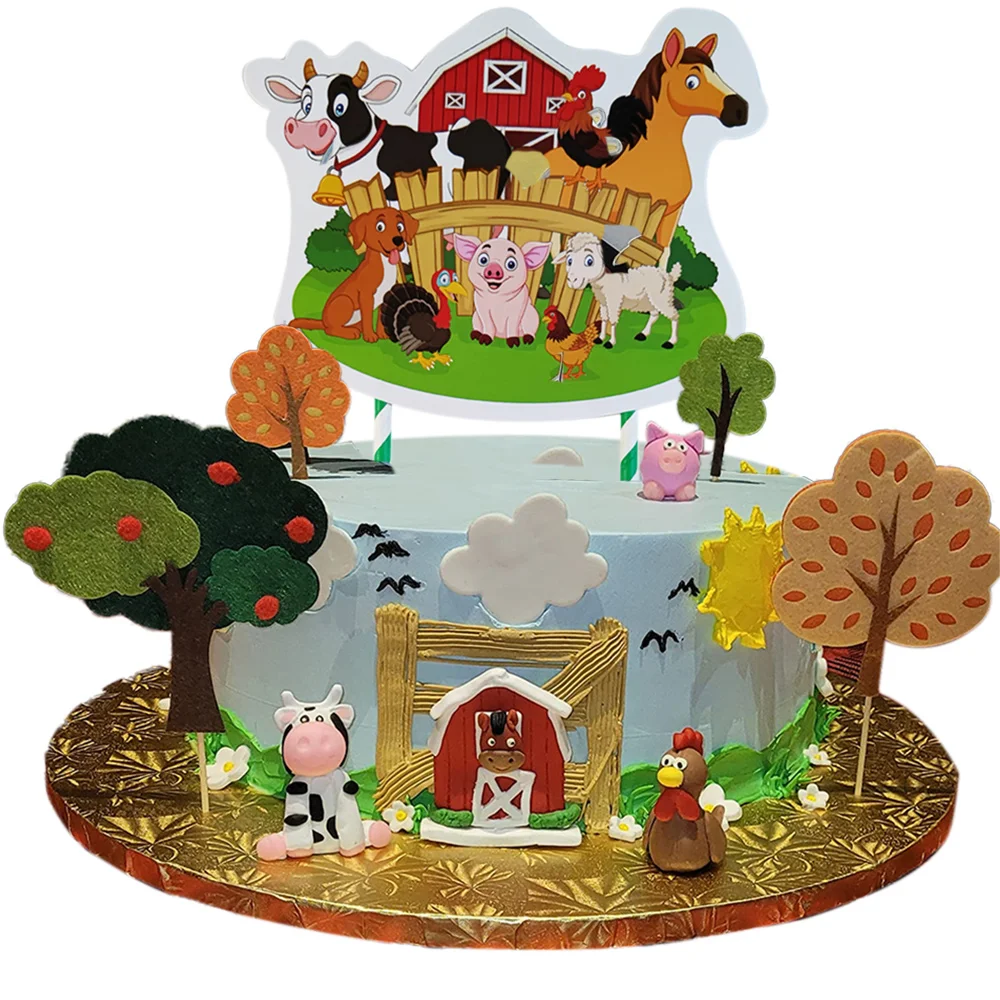 топпер для торта Украшение для торта на ферму, топпер для торта, корова, животное, Лесной трактор, лошадь, товары для дома, праздник для будущей матери, украшение для торта на день рождения