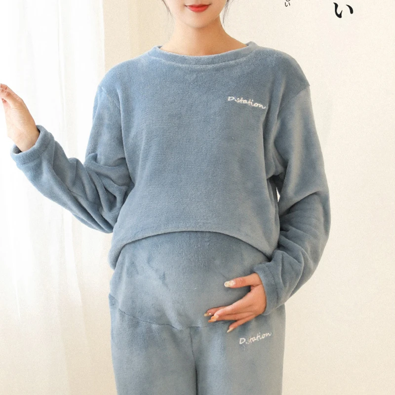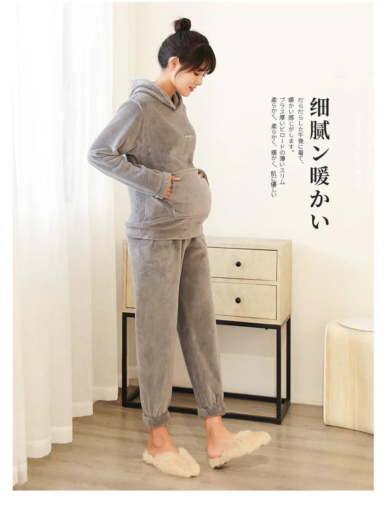 V-TREE/осенне-зимние фланелевые пижамные комплекты для беременных из 2 предметов, теплые пижамы для кормления грудью, ночная рубашка для беременных женщин, одежда для сна