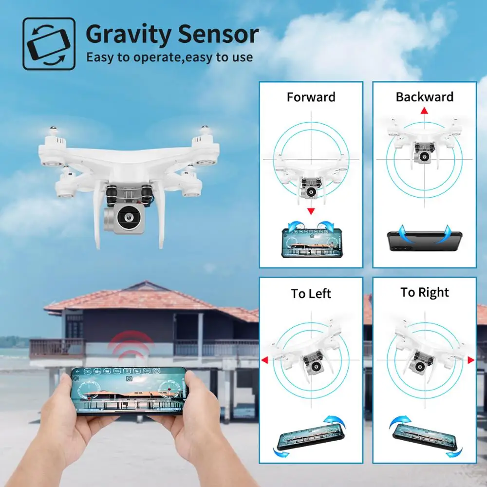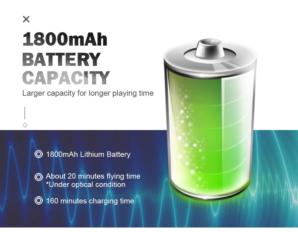 ✔С функцией удержания высоты обеспечивает стабильный полет.✔С функцией Wi-Fi можно подключать приложение, систему APK, чтобы делать фотографии, видео, передачу в реальном времени через камеру телефона.✔Благодаря 45 градусной регулируемой hd-камере 1080P камера регулируется от 0 до 45 для более широкого просмотра и более четких изображений.✔С безголовым режимом, полностью решая проблемы «потери ориентации».✔С аккумулятором емкостью 1800 мАч для более длительного времени воспроизведения, время полета до 20 минут.✔6-осевой гироскоп сильная стабильность, легко выполняйте различные маневры в воздухе, сильное сопротивление ветра, легче контролировать.✔Поднимайте и опускайте/вперед и назад/влево и вправо, поворачивая/влево и вправо, летая/3D flips/снимайте фото и видео/регулируемая камера/светодиодный контроль.✔Есть 3 режима скорости, подходит для начинающих, промежуточных и опытных.