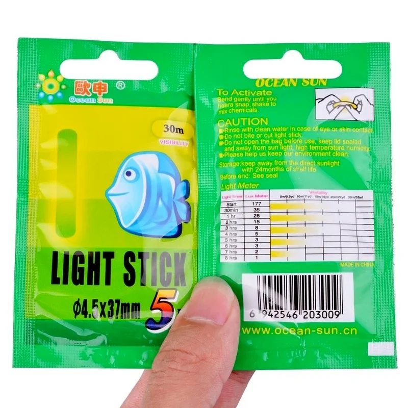 Светлячки для рыбалки, 5 шт.пакет, 4,5 х37 мм3 х25 мм, флуоресцентс...