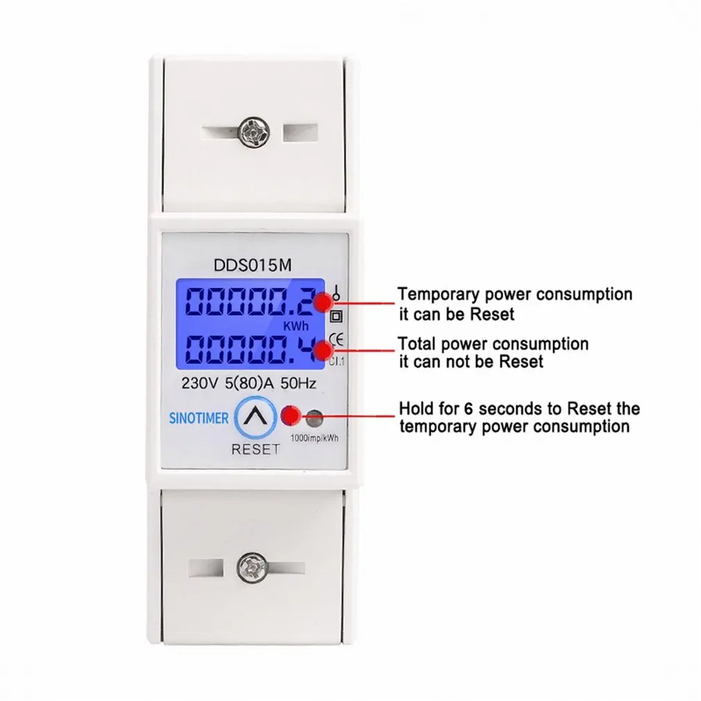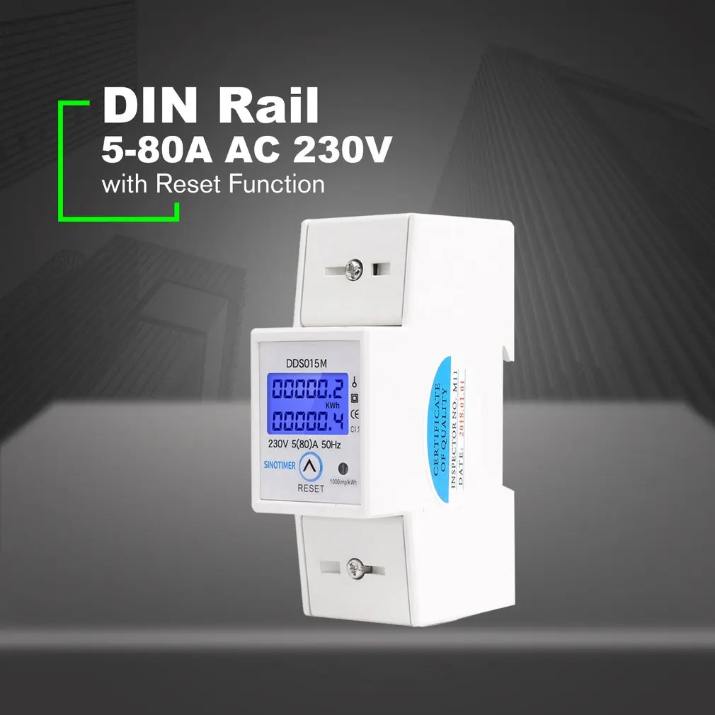 Din-рейка 5-80A AC 230V 50Hz однофазный ваттметр Потребляемая мощность ватт Электрический счетчик энергии кВт-ч с функцией сброса