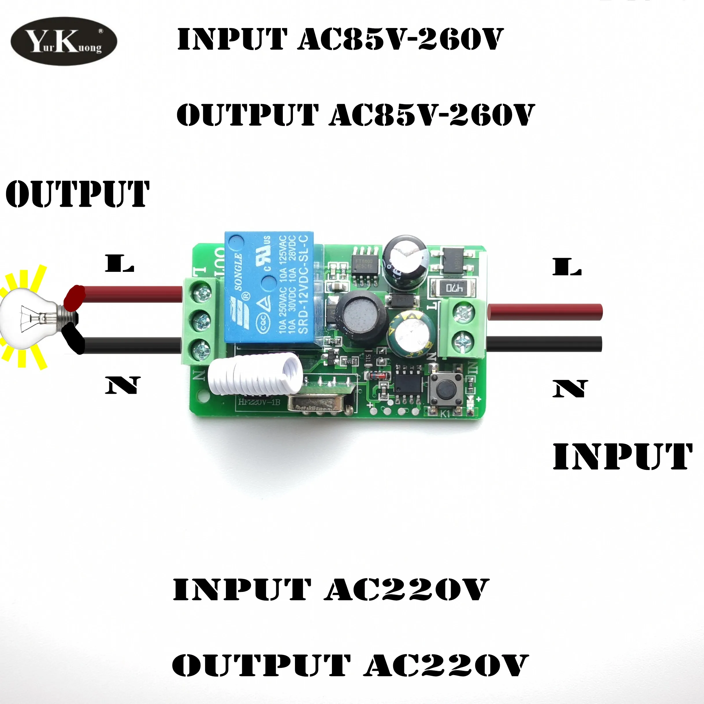 Рабочее напряжение: AC85V-260V(AC85V AC100V AC110V AC120V AC220V AC230V AC240V AC260V все в порядке)Рабочая частота: 315 МГц или 433 МГц опциональноТок покоя: менее 10 мАРабочая температура: -10'c-+ 60'CЧувствительность приема:-105dBmРабочее расстояние: 10-100 мРежим модуляции: супергетеродинныйМаксимальная нагрузка: реле 10А имеет реле 10А, резистивная нагрузка ≤ 5А, Индуктивная нагрузка ≤ 3аСоответствие motod: кнопка обучения для добавления передатчикаРежим работы: Мгновенный/тумблер/блокировка/мгновенная задержка выключения 5s/10s/15sРазмер платы: 55 мм * 32 мм * 17 ммЧехол Размеры: 73 мм * 36 мм * 23 мм Проводка В L ----- вход AC85V-260V провод (L)N ----- Входная AC85V-260V нейтральный провод (N) Из L ----- Ouput AC85V-260V провод (L)N ----- выход AC85V-260V нейтральный провод (N) Мгновенный ----- нажмите и удерживайте --- ВКЛ, отпустите ---- ВЫКЛ Переключение ------- нажмите один раз ---- вкл. Нажмите еще раз ---- ВЫКЛ Защелкивающийся ------- Нажмите A ---- ВКЛ, нажмите B-----OFF Мгновенный 5s/10s/15s -------- нажмите и удерживайте --- вкл., отпустите 5s/10s/15s задержка ----- ВЫКЛ. Код обучения Входной AC85V-260V для приемника для работы, Мгновенный ----- нажмите кнопку обучения 1 раз, светодиодный индикатор, затем нажмите передатчик. Светодиодный индикатор вспышки Переключение ---------- нажмите кнопку обучения в течение 2 раз, светодиодный индикатор включен, затем нажмите передатчик. Светодиодный индикатор вспышки Защелкивающийся -------- нажмите кнопку обучения в течение 3 времени, светодиодный индикатор, затем нажмите передатчик. Светодиодный индикатор вспышки Мгновенный 5s/10s/15s задержка времени ------Нажмите кнопку обучения в течение 4/5/6 времени, светодиодный индикатор, затем нажмите передатчик. Светодиодный индикатор вспышки Код Очистки Входной AC85V-260V для работы приемника, нажмите кнопку обучения 8 раз, светодиодный индикатор мигает 6 раз, код очищен. (Примечание: Если вам нужно изменить режим работы, выключите питание и включите еще раз, чтобы очистить код и повторно узнать снова)
