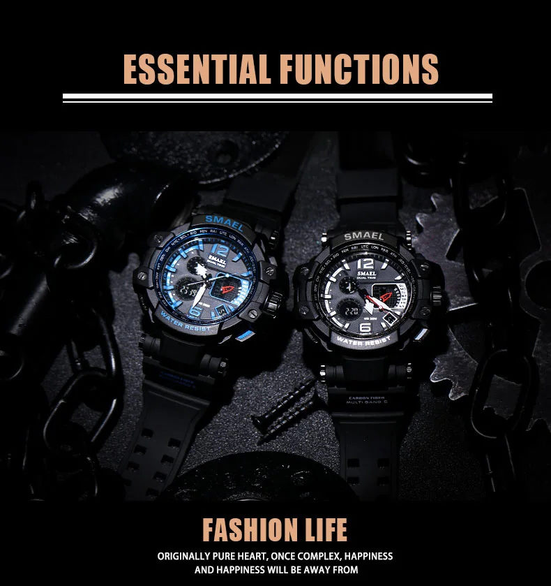 Часы Smael Мужские кварцевые цифровые, спортивные электронные, в стиле милитари, водонепроницаемые, 1509